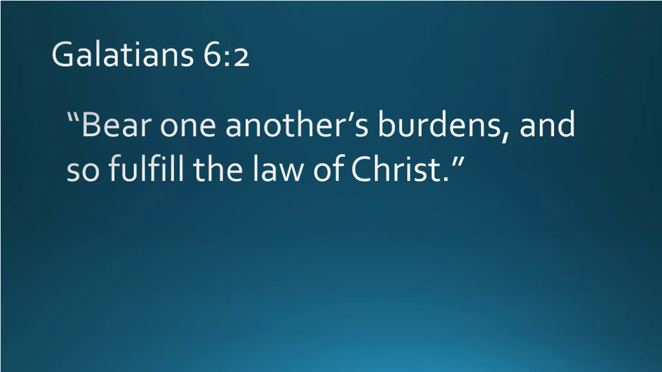 Galatians 6:2 Bear one another s burdens, and so fulfill the law of Christ.