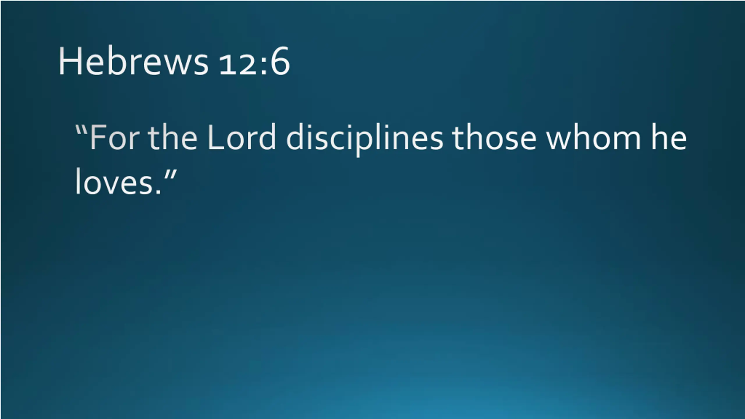 Hebrews 12:6 For the Lord disciplines those whom he loves.