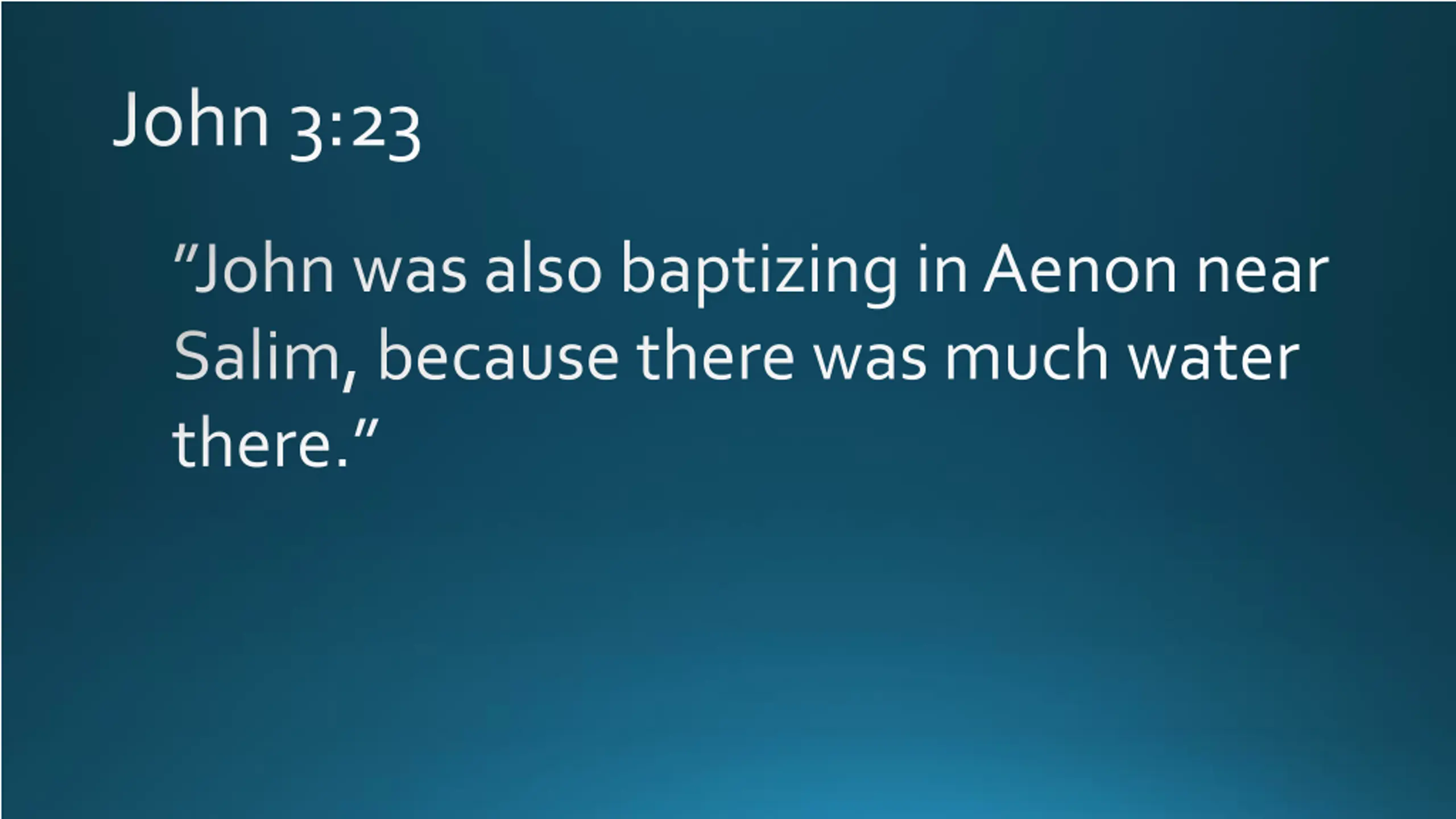 John 3:23 John was also baptizing in Aenon near Salim, because there was much water there.