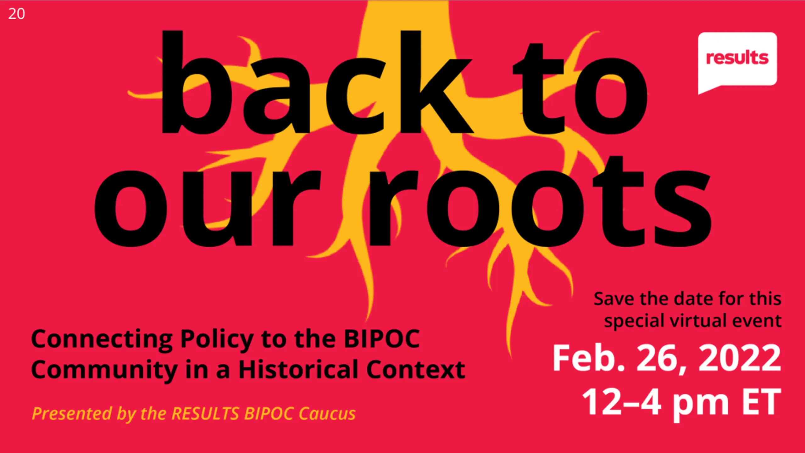 19 RESULTS Grassroots Anti- Oppression Working Group Volunteers and staff working together to advance RESULTS anti-oppression values and create opportunities for ongoing learning. Want to get involved? Register to join the next call February 23, 8:30 PM ET. https://bit.ly/AOWorkingGroup