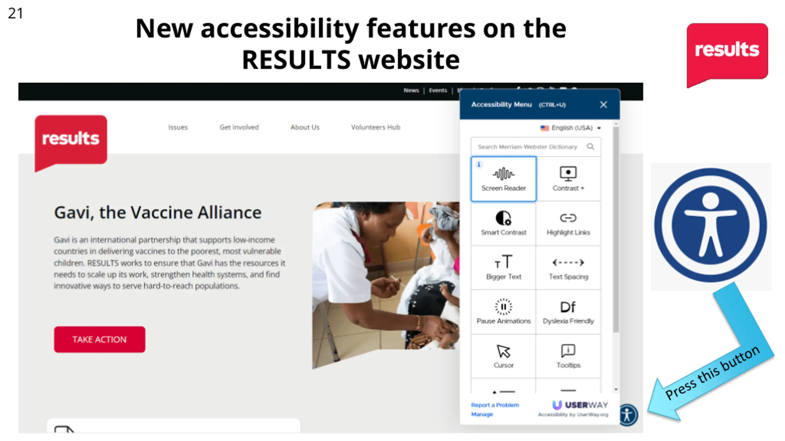 21 New accessibility features on the RESULTS website