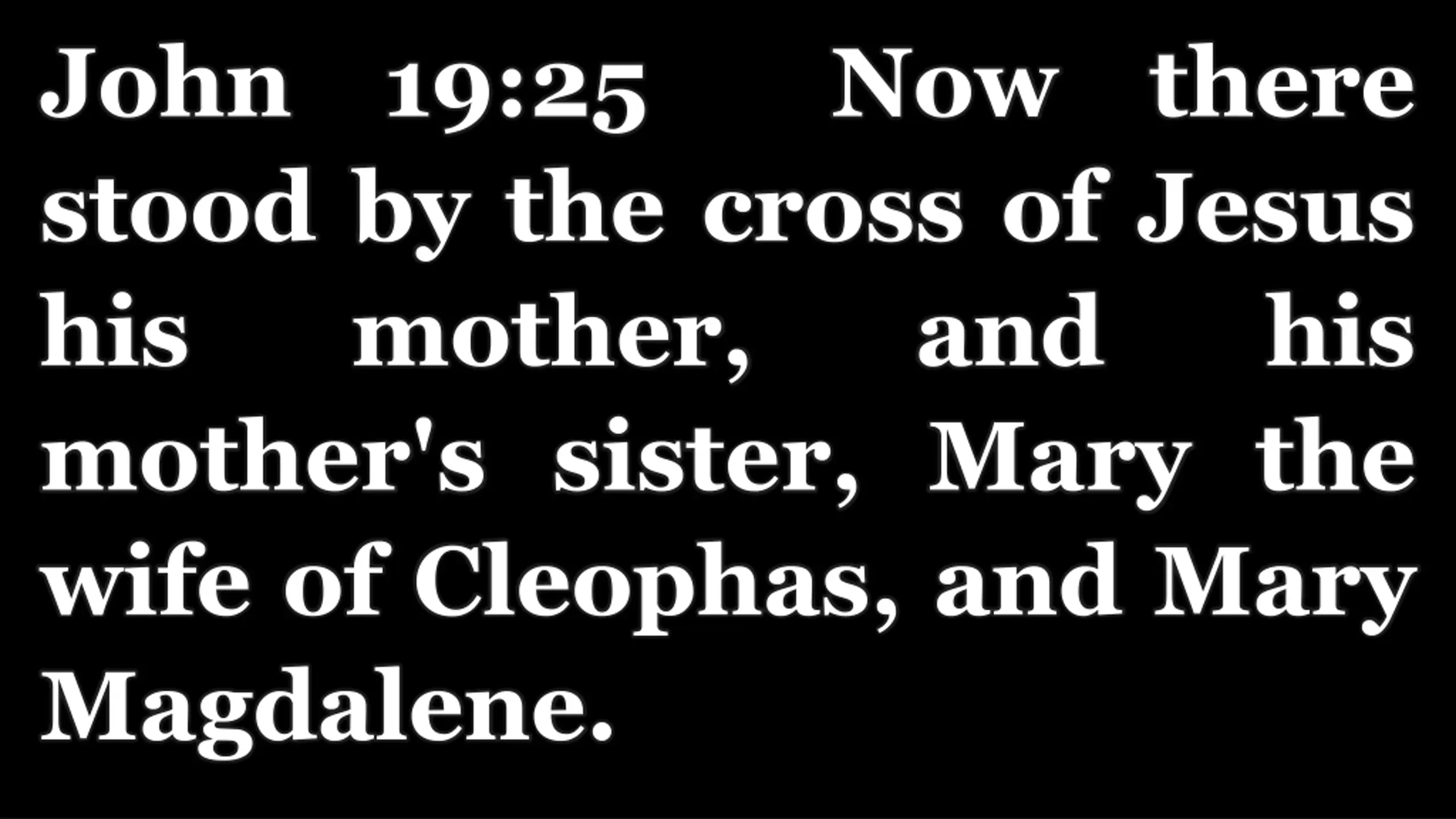 John 19:25 Now there stood by the cross of Jesus his mother, mother's sister, Mary the wife of Cleophas, and Mary Magdalene. and his