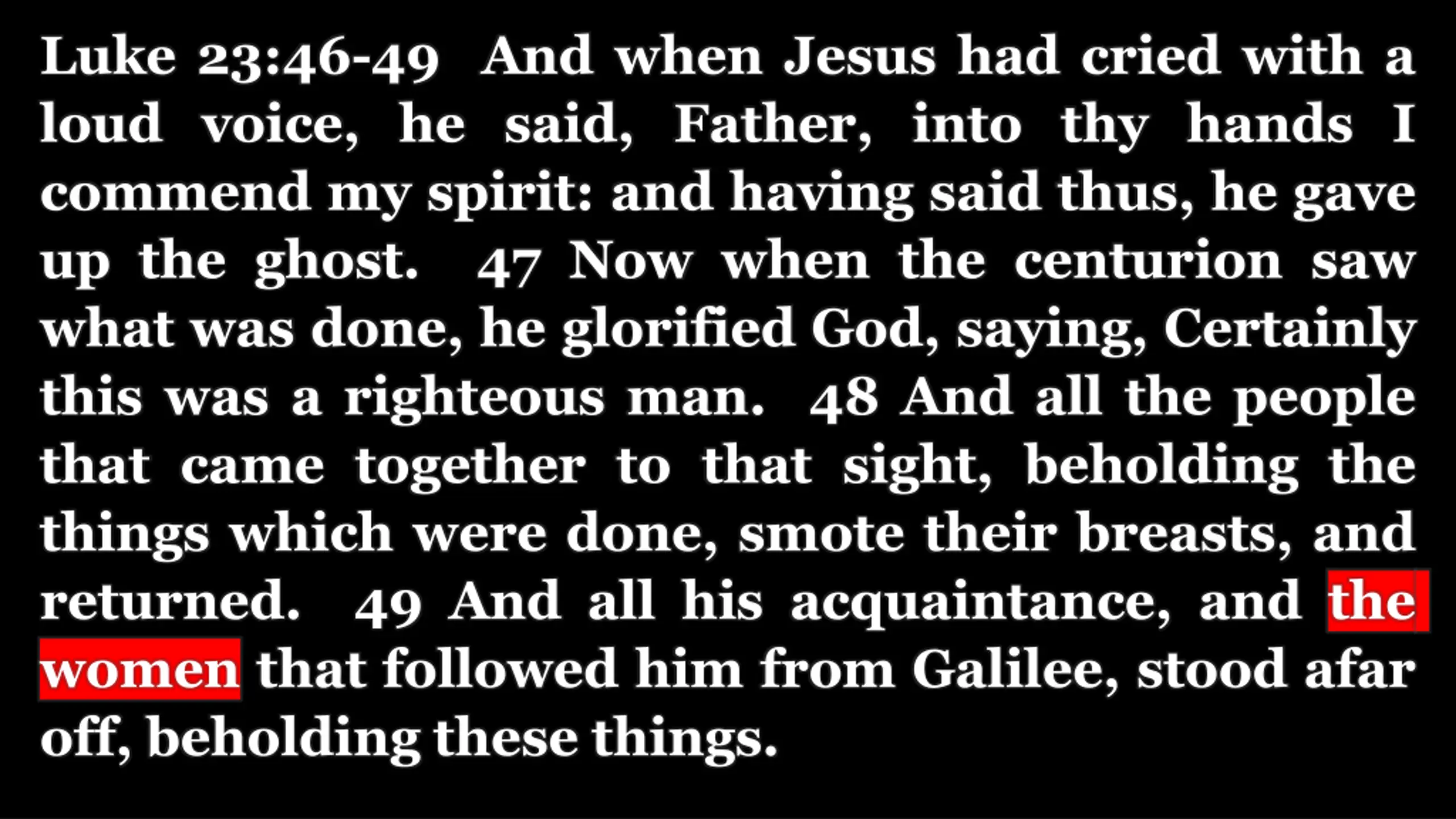 Luke 23:46-49 And when Jesus had cried with a loud voice, he said, Father, into thy hands I commend my spirit: and having said thus, he gave up the ghost. 47 Now when the centurion saw what was done, he glorified God, saying, Certainly this was a righteous man. 48 And all the people that came together to that sight, beholding the things which were done, smote their breasts, and returned. 49 And all his acquaintance, and the women that followed him from Galilee, stood afar off, beholding these things.