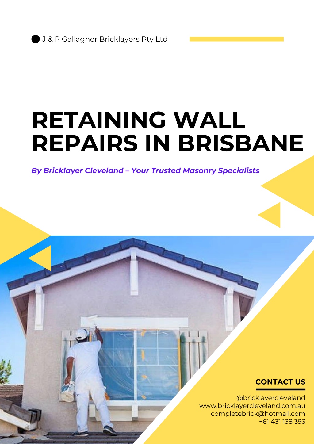 J & P Gallagher Bricklayers Pty Ltd RETAINING WALL REPAIRS IN BRISBANE By Bricklayer Cleveland Your Trusted Masonry Specialists CONTACT US @bricklayercleveland www.bricklayercleveland.com.au completebrick@hotmail.com +61 431 138 393