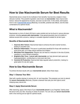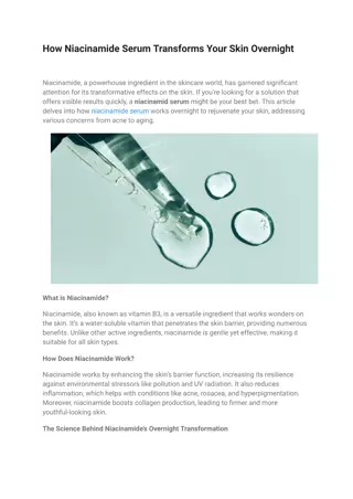Product Description UniQaya's Anti-Aging Encapsulated Retinol Serum with Vit E, Kakadu Plum & Pearl Algae is a powerful anti-aging serum that targets fine lines, wrinkles, and other signs of aging. Kakadu Plum Pearl Algae Vitamin E Pearl algae is rich in minerals and peptides that help to improve skin elasticity and firmness. It also helps to boost collagen production, which can reduce the appearance of fine lines and wrinkles. Vitamin E is a powerful antioxidant that helps to protect the skin from free radical damage. It also helps to moisturize and soothe the skin, reducing dryness irritation. Kakadu Plum is a rich sourceof vitamin C, a potent antioxidant that helps to protect the skin from environmental stressors and brighten the skin. 01 02 03 and www.uniqaya.com www.uniqaya.com