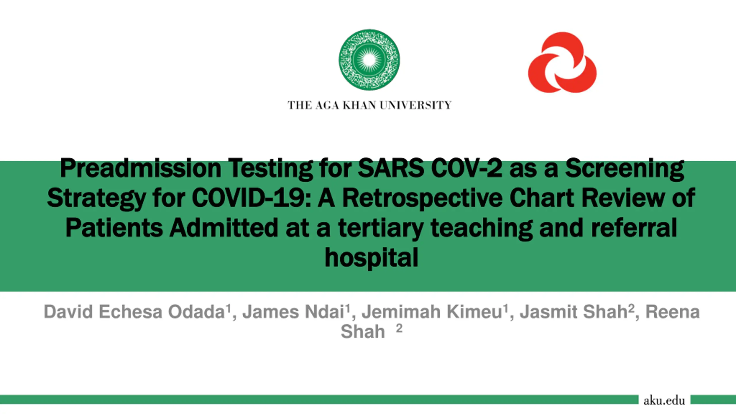 Preadmission Testing for SARS COV Preadmission Testing for SARS COV- -2 as a Screening Strategy for COVID Strategy for COVID- -19: A Retrospective Chart Review of 19: A Retrospective Chart Review of Patients Admitted at a tertiary teaching and referral Patients Admitted at a tertiary teaching and referral hospital hospital 2 as a Screening David Echesa Odada1, James Ndai1, Jemimah Kimeu1, Jasmit Shah2, Reena Shah 2