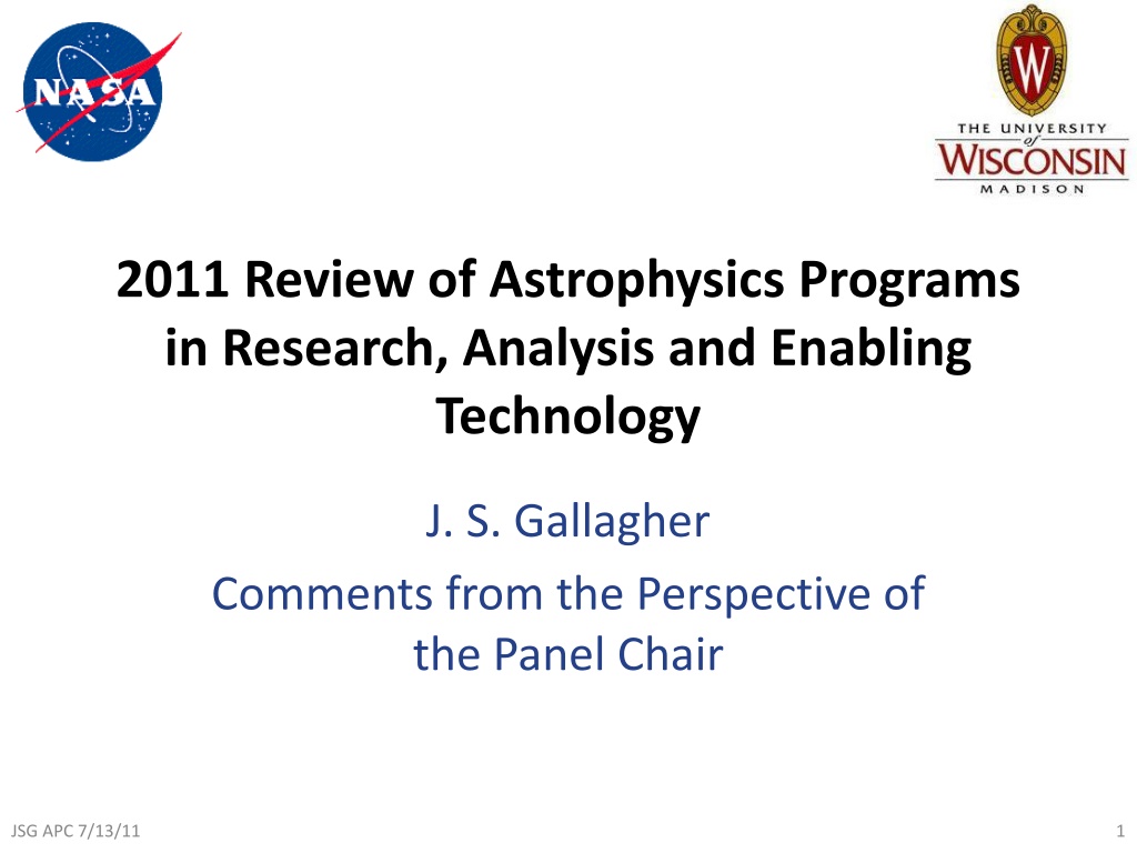 2011 Review of Astrophysics Programs in Research, Analysis and Enabling Technology J. S. Gallagher Comments from the Perspective of the Panel Chair JSG APC 7/13/11 1