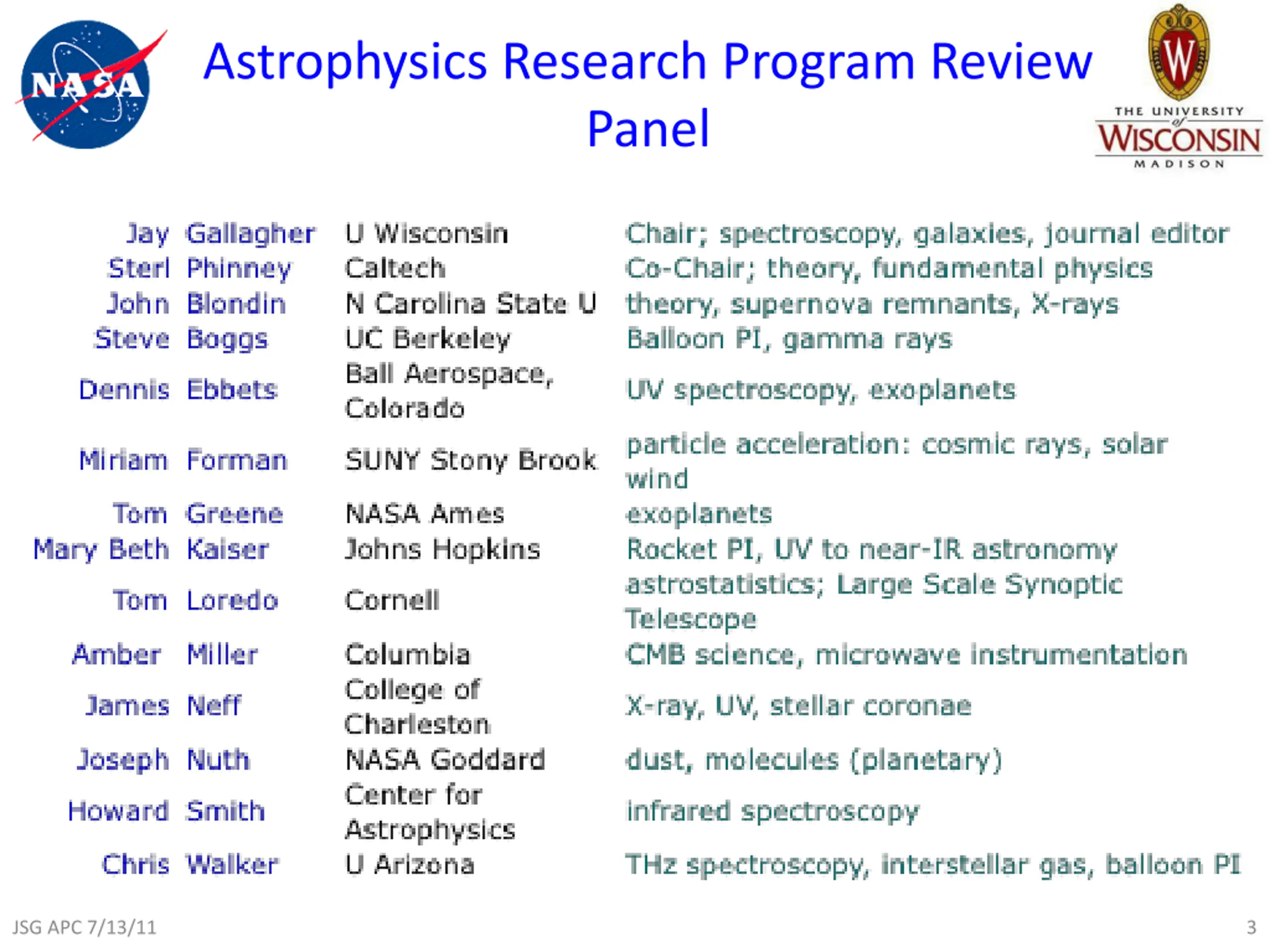 Astrophysics Research Program Review Panel JSG APC 7/13/11 3