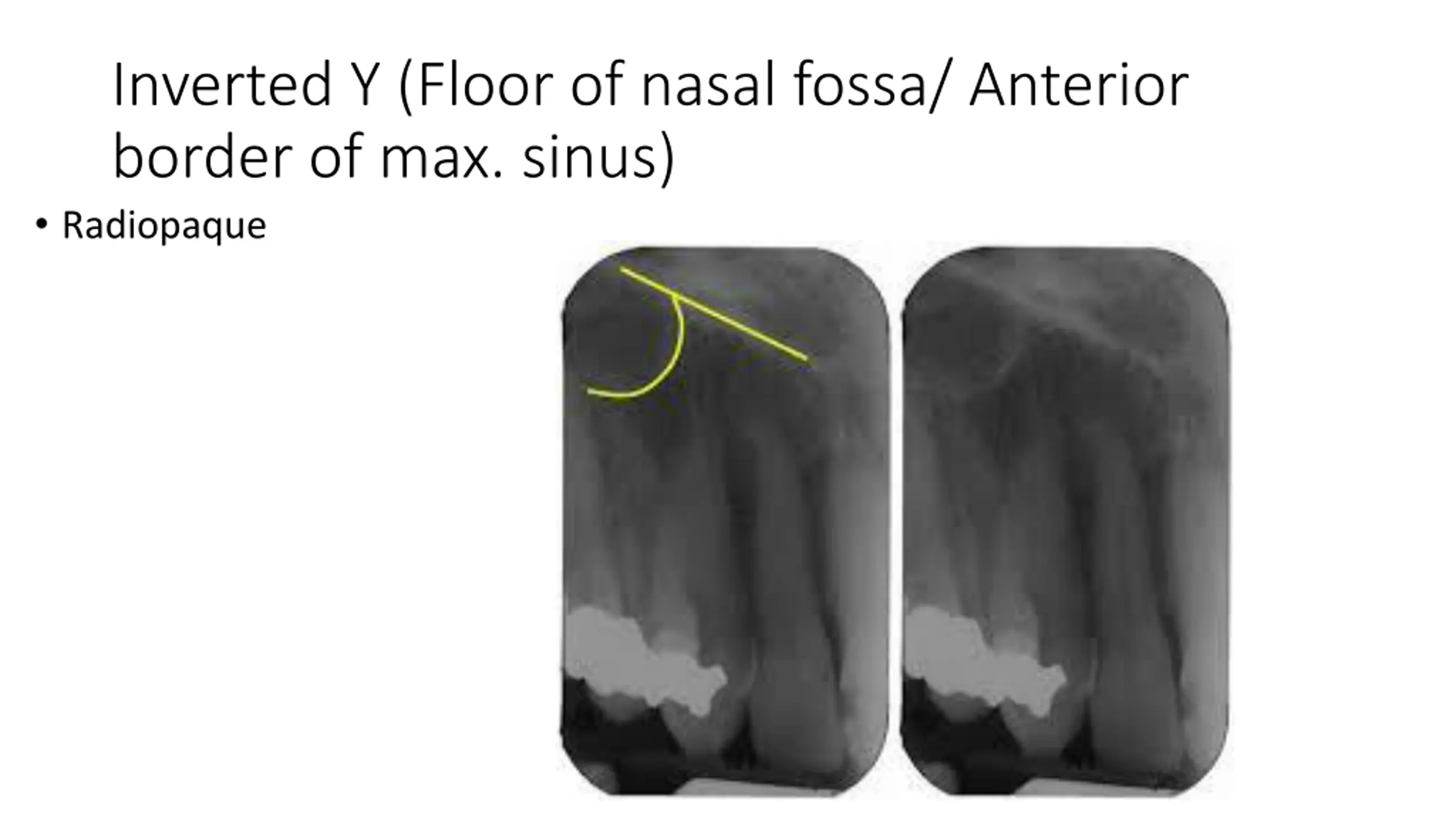 Inverted Y (Floor of nasal fossa/ Anterior border of max. sinus) Radiopaque