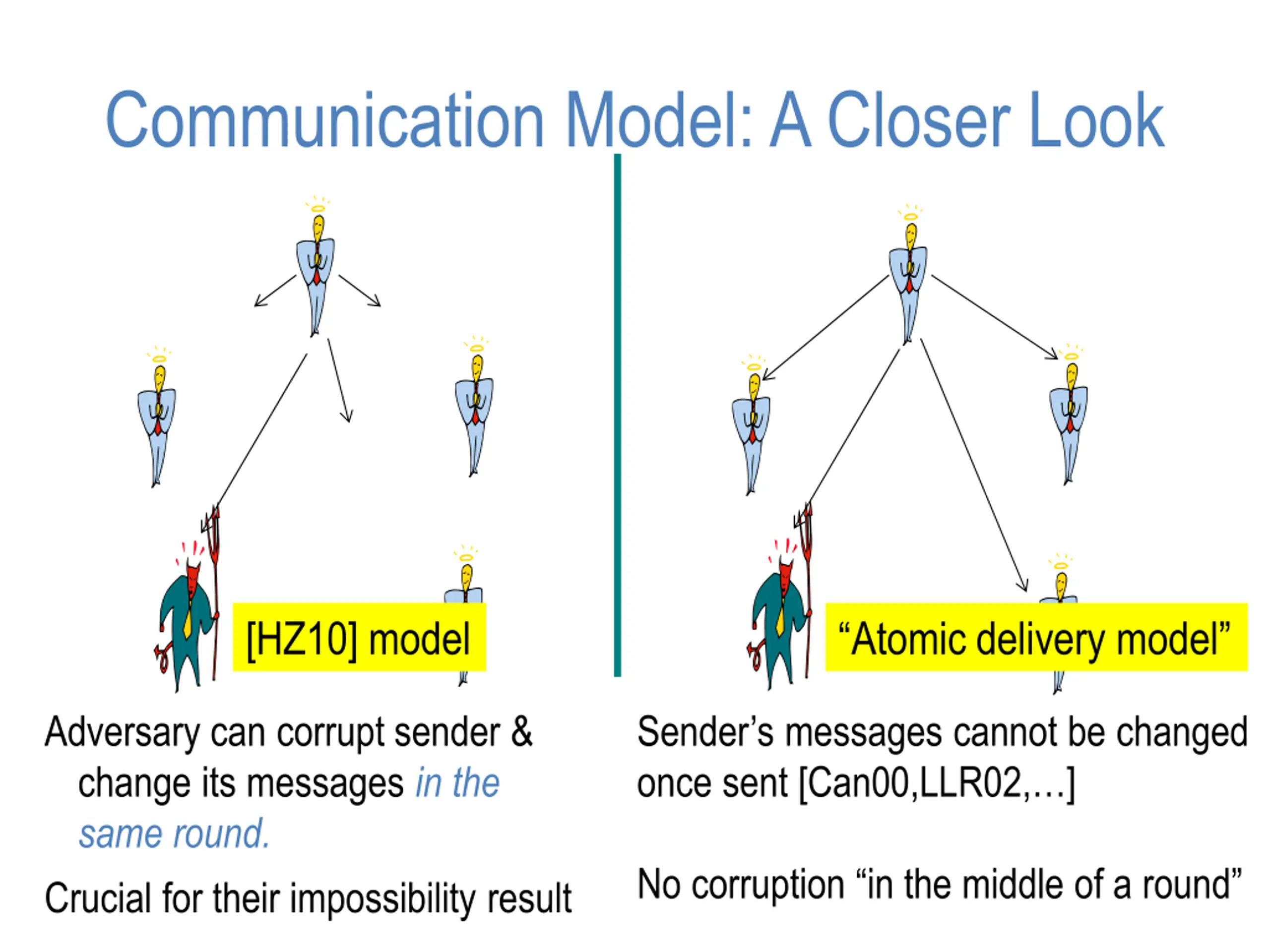 Communication Model: A Closer Look [HZ10] model Atomic delivery model Adversary can corrupt sender & change its messages in the same round. Crucial for their impossibility result Sender s messages cannot be changed once sent [Can00,LLR02, ] No corruption in the middle of a round