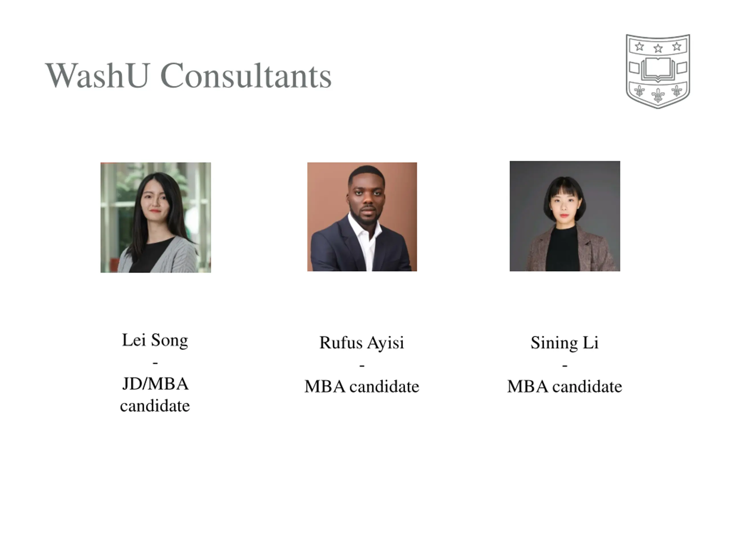 WashU Consultants Lei Song - JD/MBA candidate Rufus Ayisi - MBA candidate Sining Li - MBA candidate