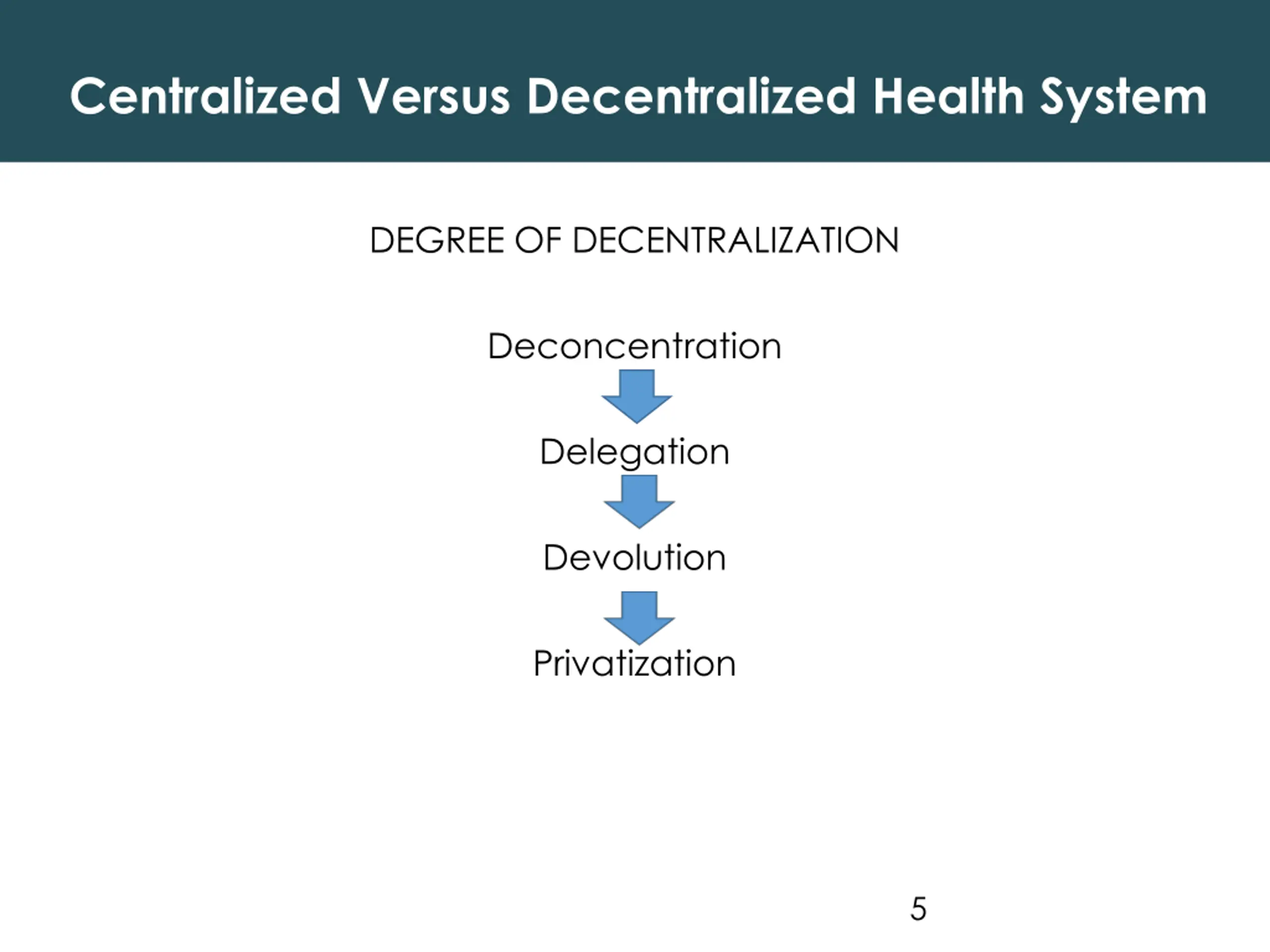 Centralized Versus Decentralized Health System DEGREE OF DECENTRALIZATION Deconcentration Delegation Devolution Privatization 5