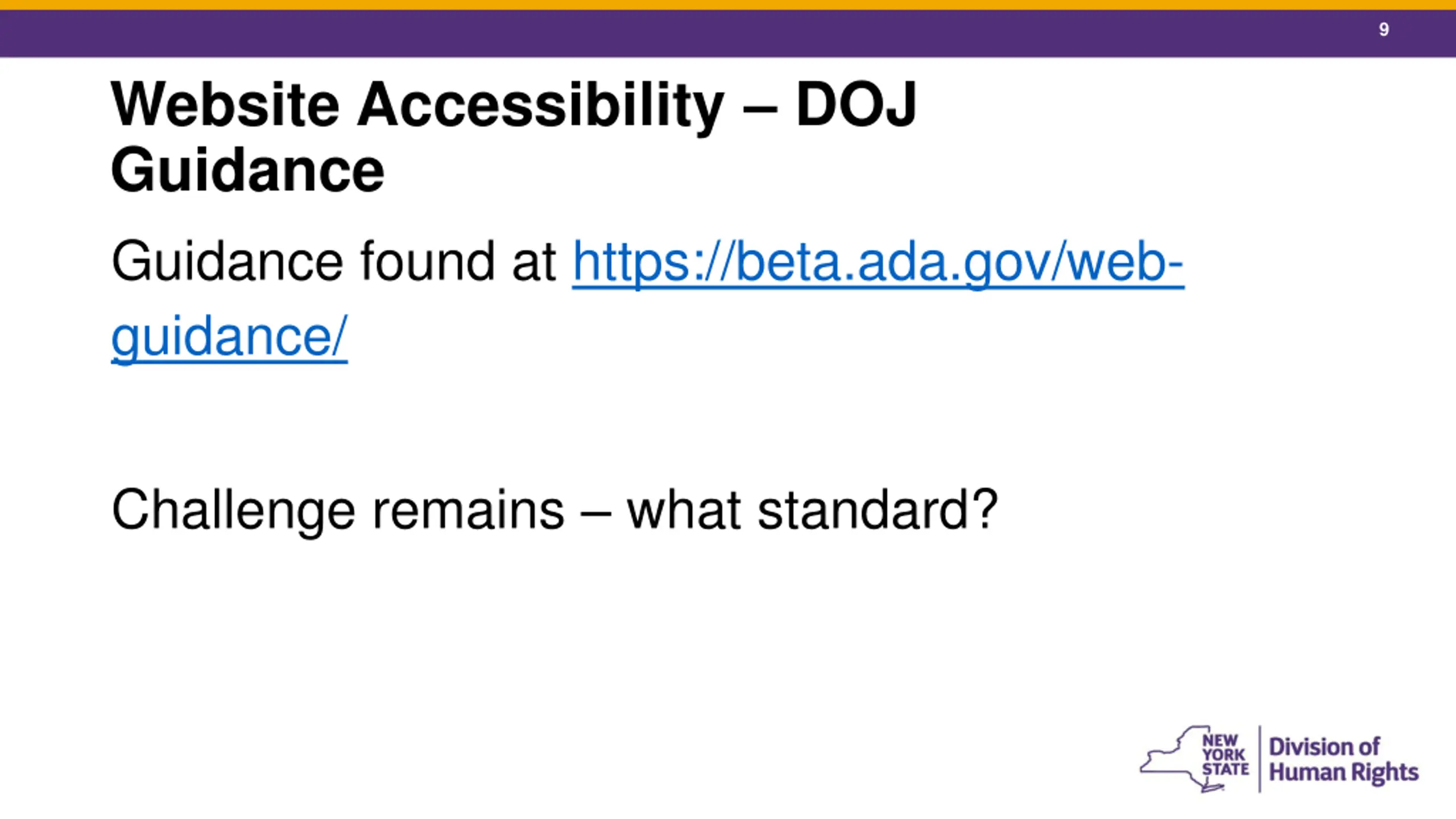 9 Website Accessibility DOJ Guidance Guidance found at https://beta.ada.gov/web- guidance/ Challenge remains what standard?