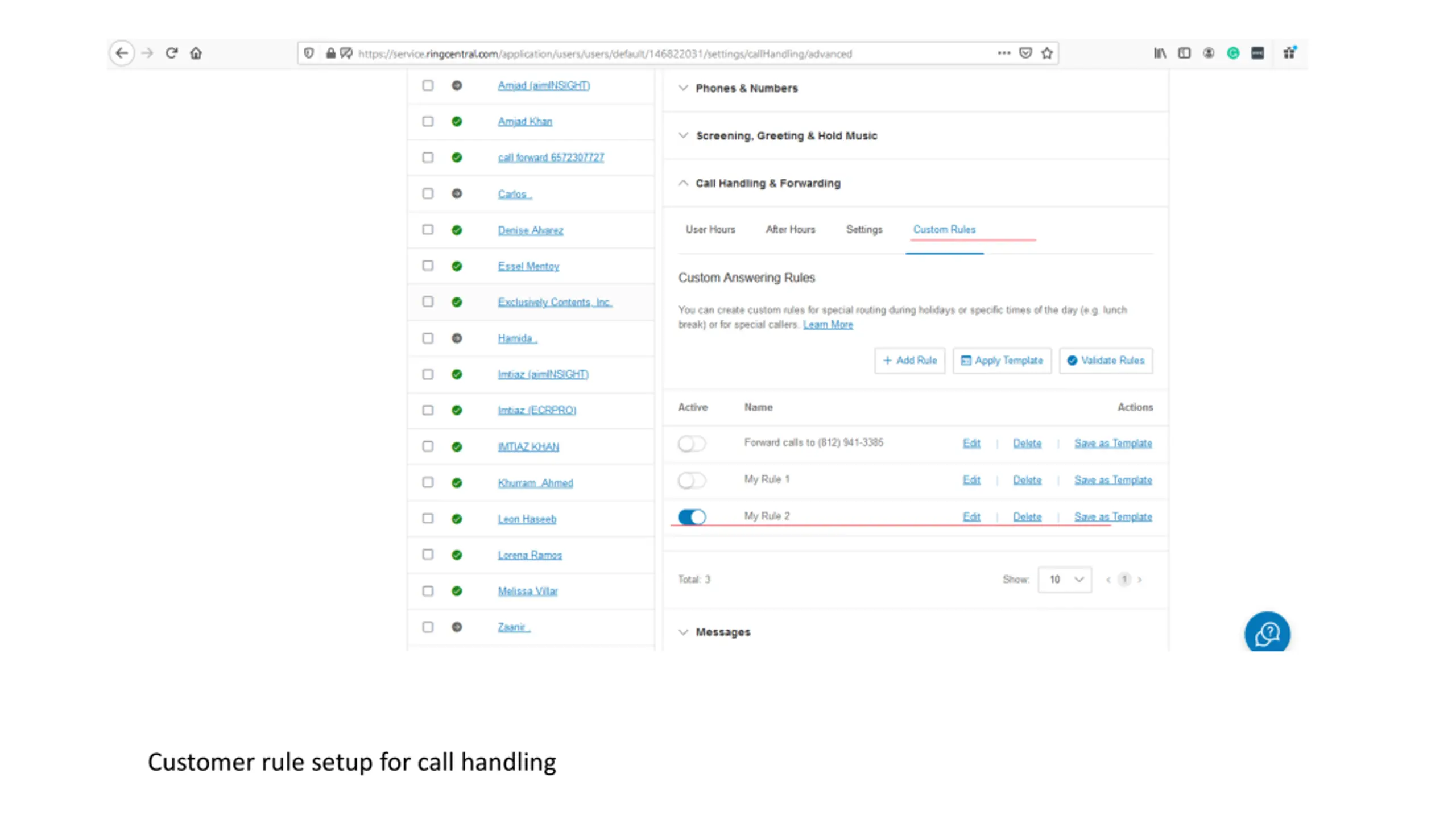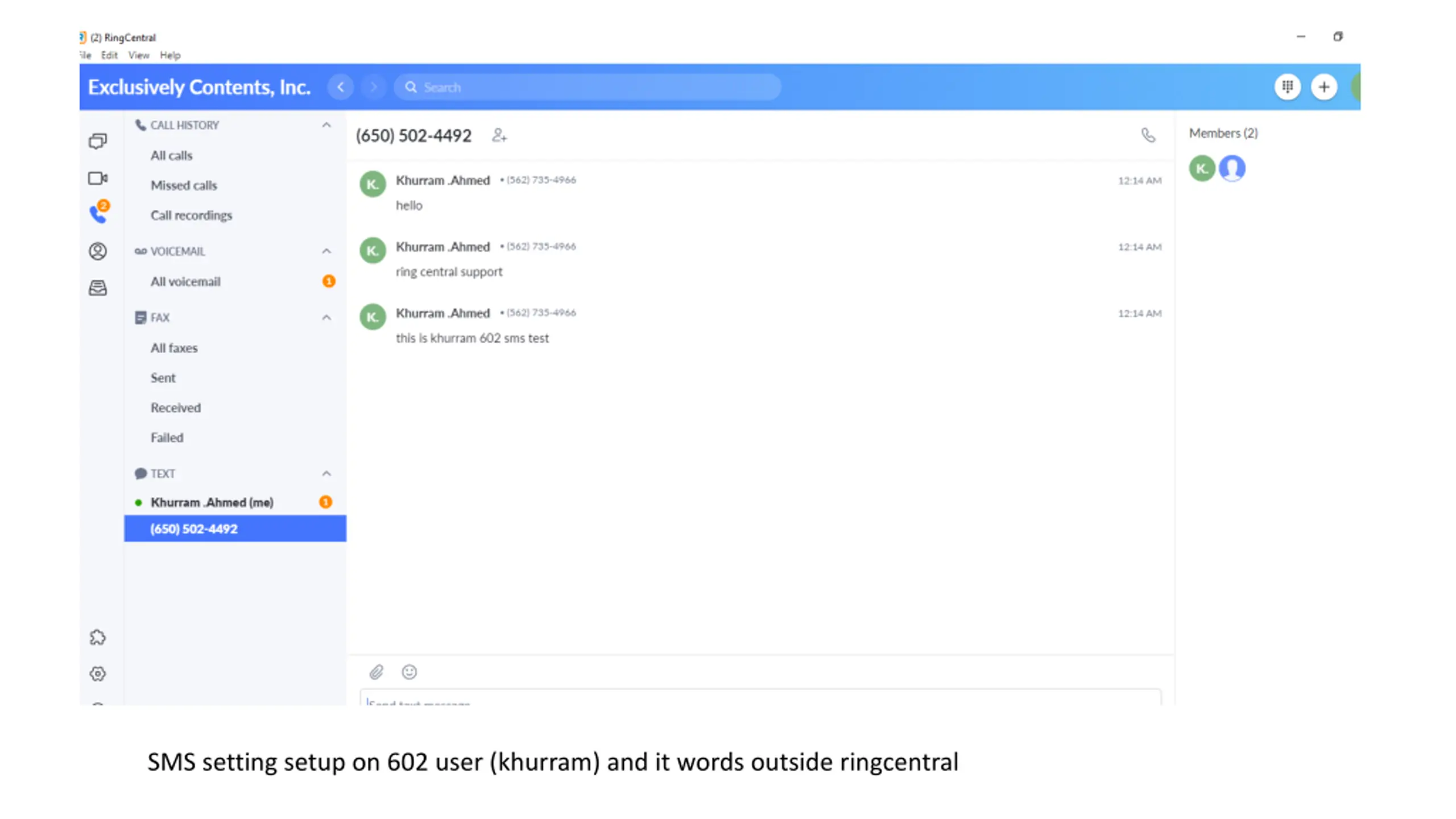 SMS setting setup on 602 user (khurram) and it words outside ringcentral