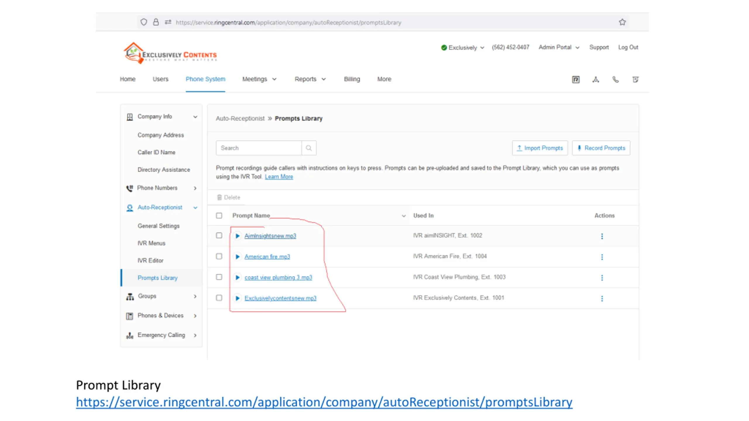 Prompt Library https://service.ringcentral.com/application/company/autoReceptionist/promptsLibrary