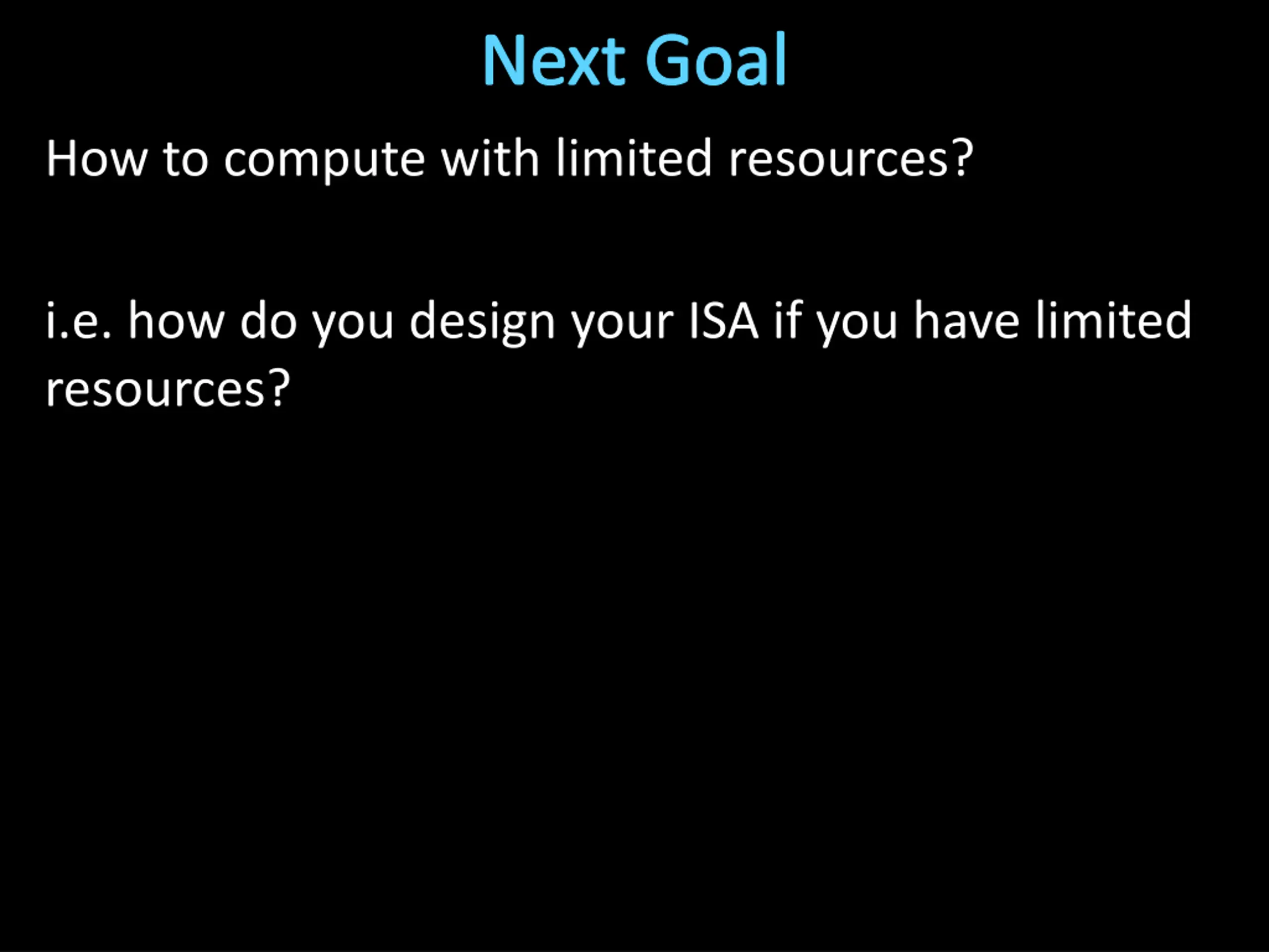 Next Goal How to compute with limited resources? i.e. how do you design your ISA if you have limited resources?