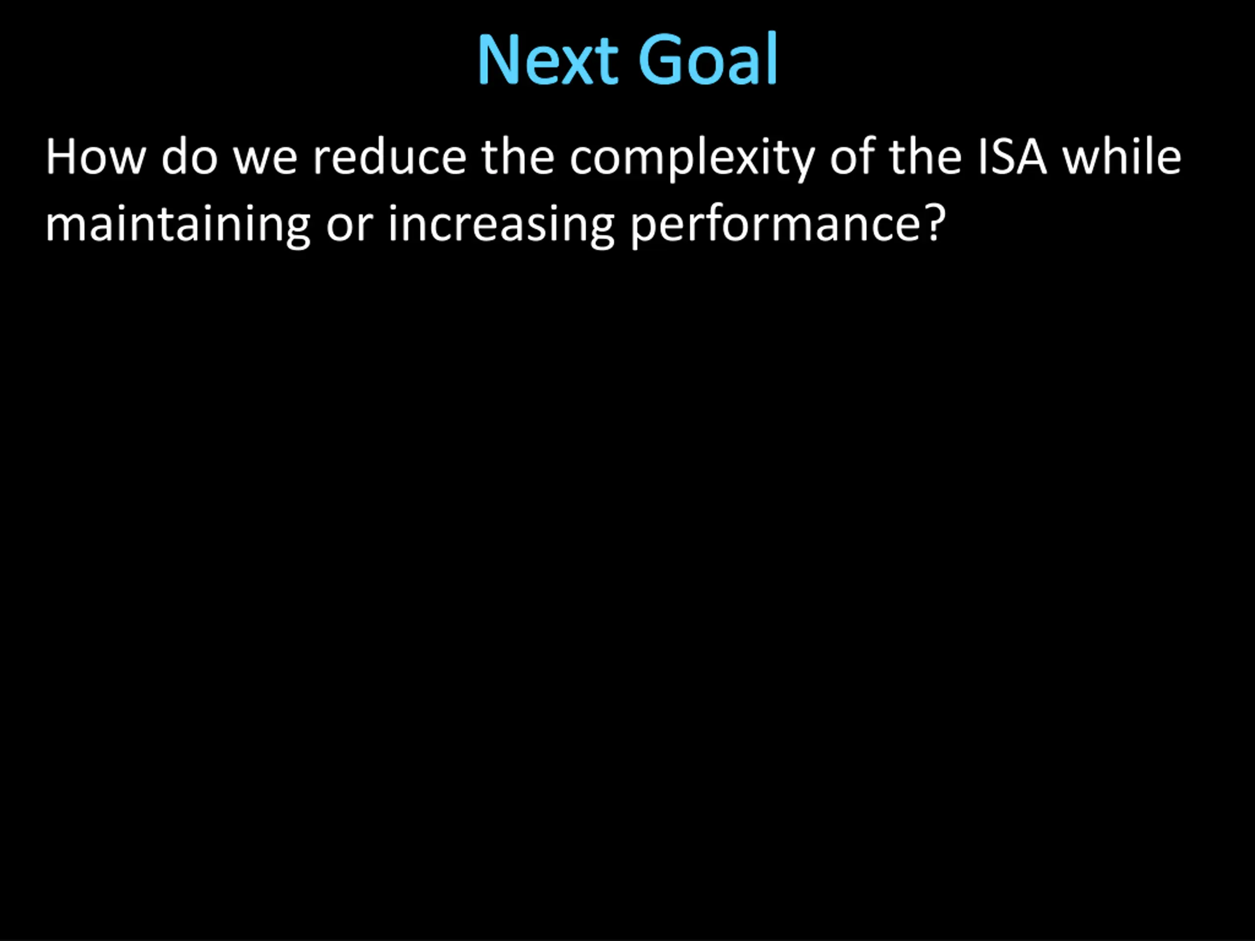Next Goal How do we reduce the complexity of the ISA while maintaining or increasing performance?