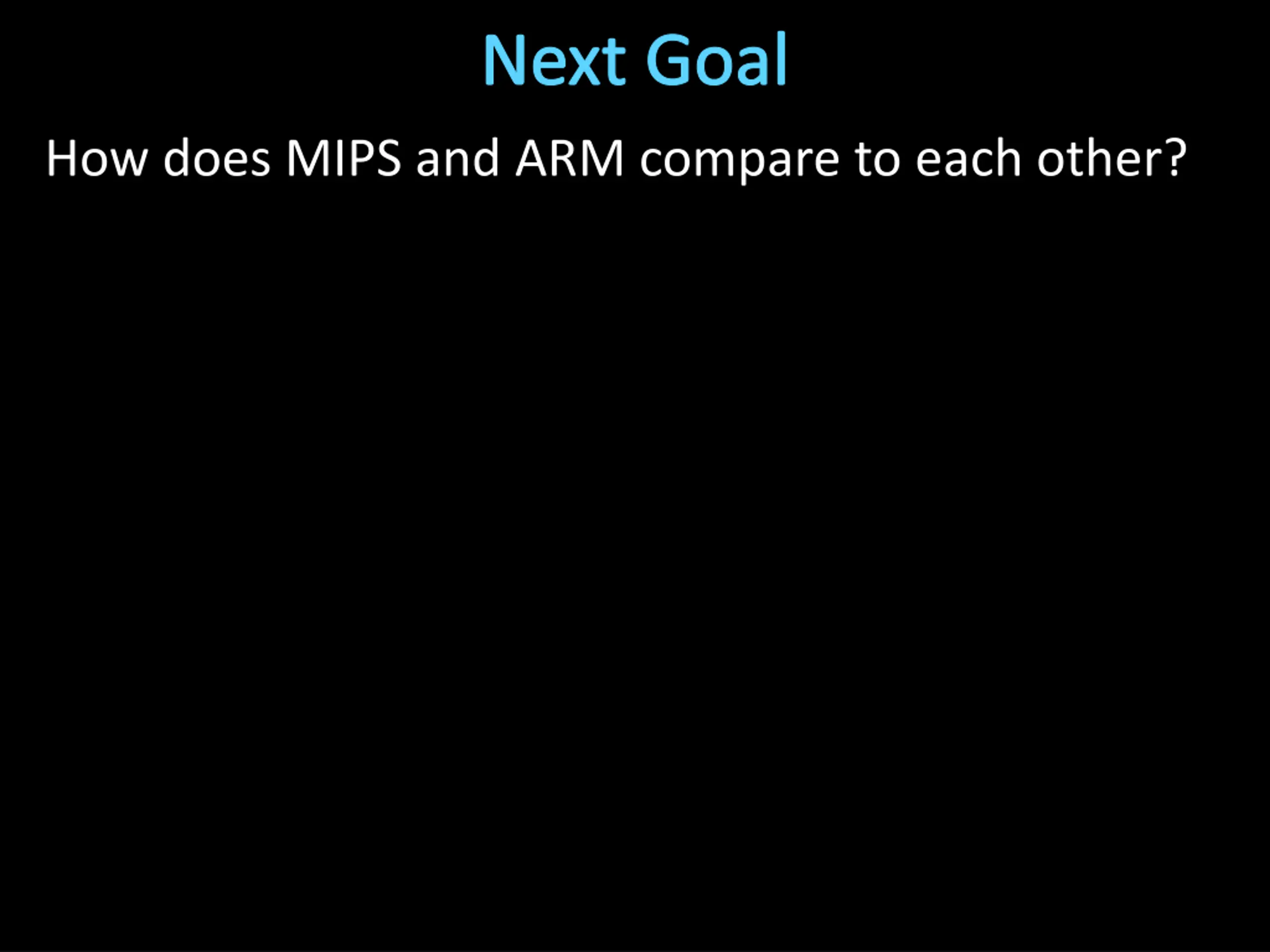 Next Goal How does MIPS and ARM compare to each other?