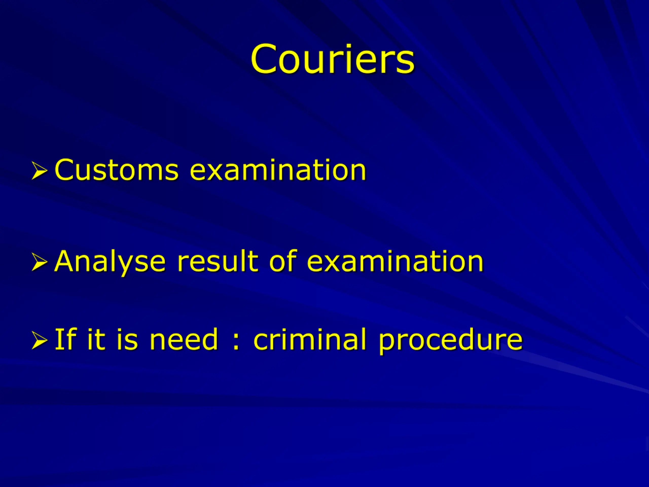 Couriers Customs examination Analyse result of examination If it is need : criminal procedure