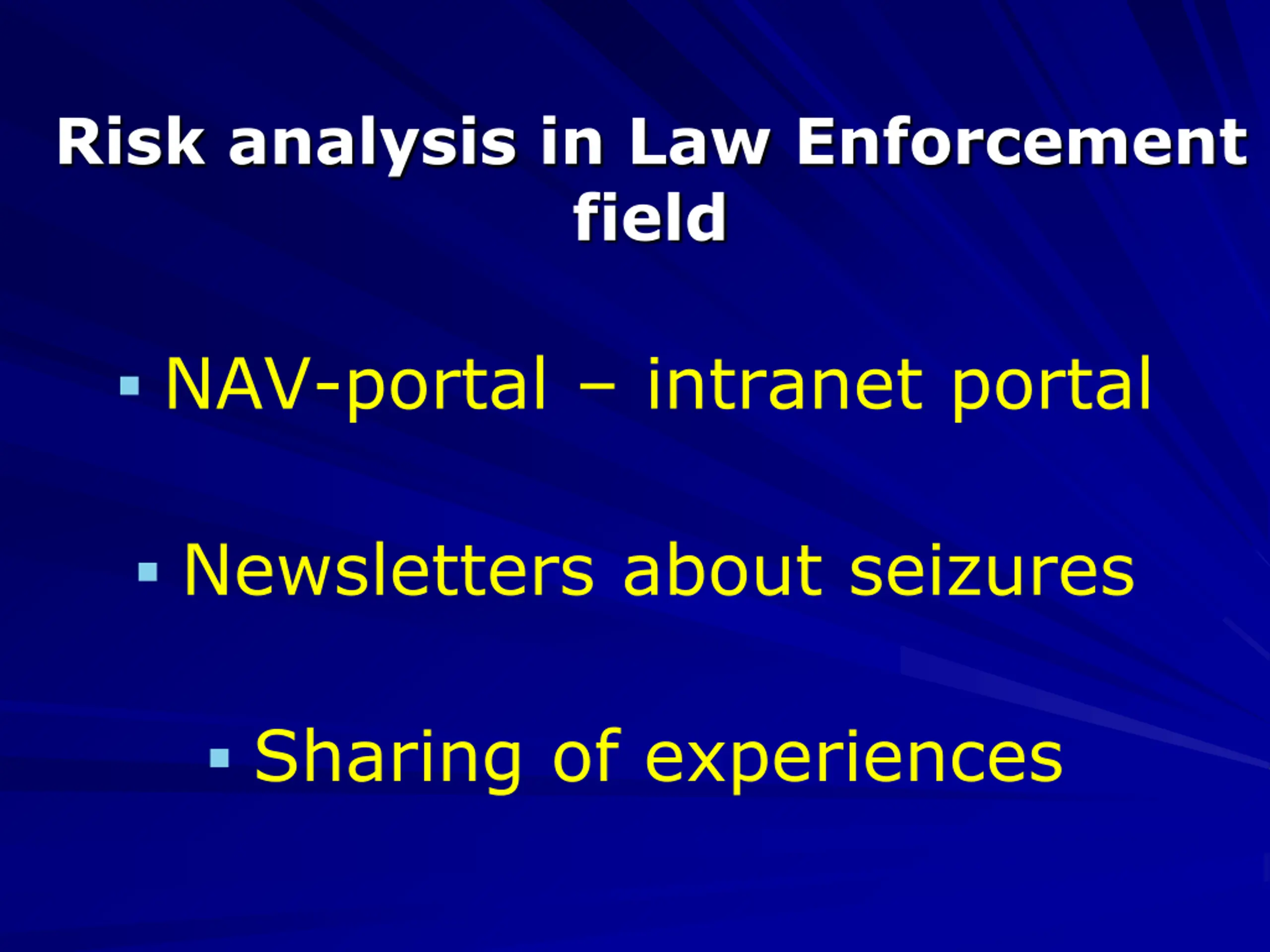 Risk analysis in Law Enforcement field NAV-portal intranet portal Newsletters about seizures Sharing of experiences