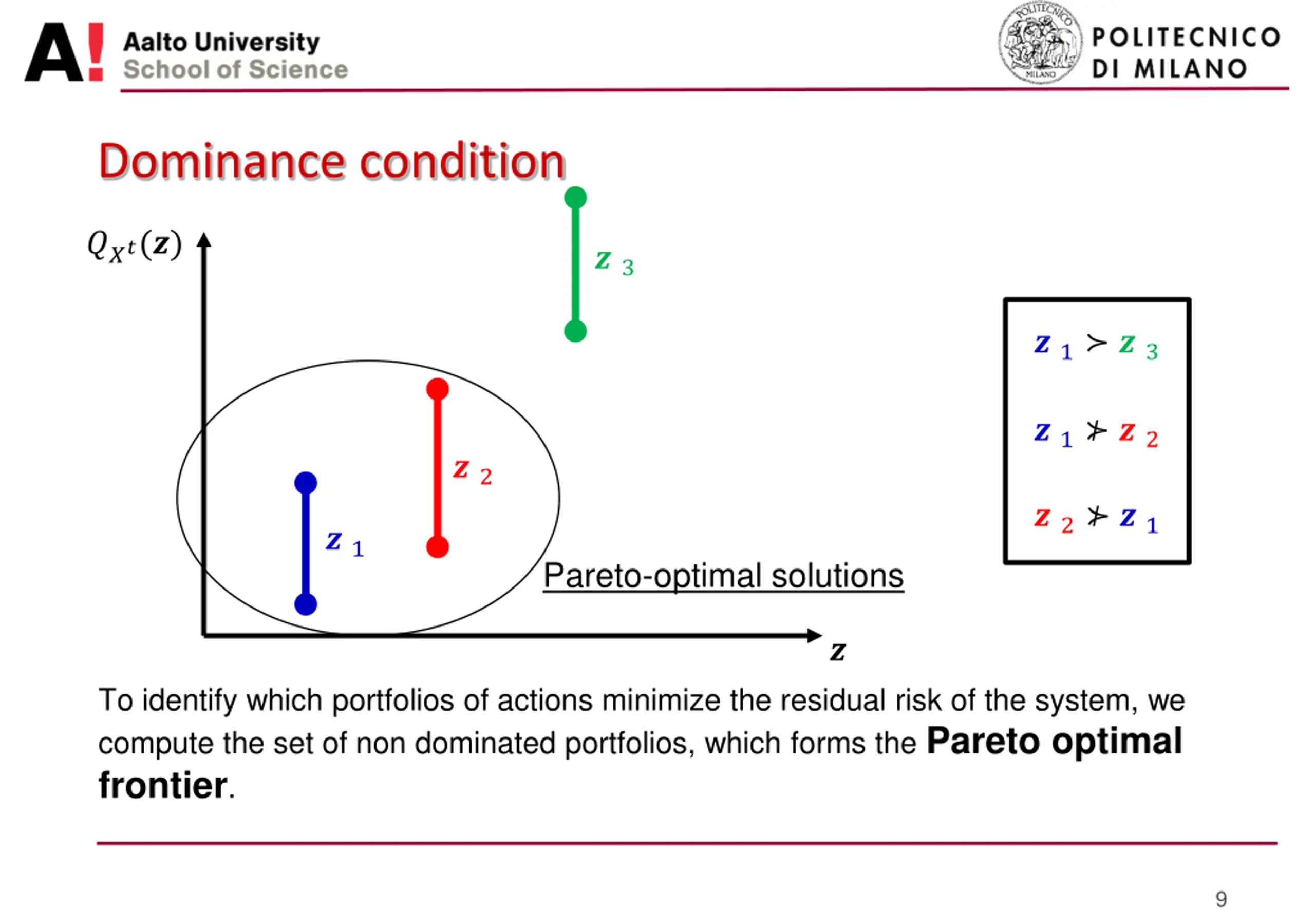 Dominance condition ???(?) ?3 ?1 ?3 ?1 ?2 ?2 ?2 ?1 ?1 Pareto-optimal solutions ? To identify which portfolios of actions minimize the residual risk of the system, we compute the set of non dominated portfolios, which forms the Pareto optimal frontier. 9