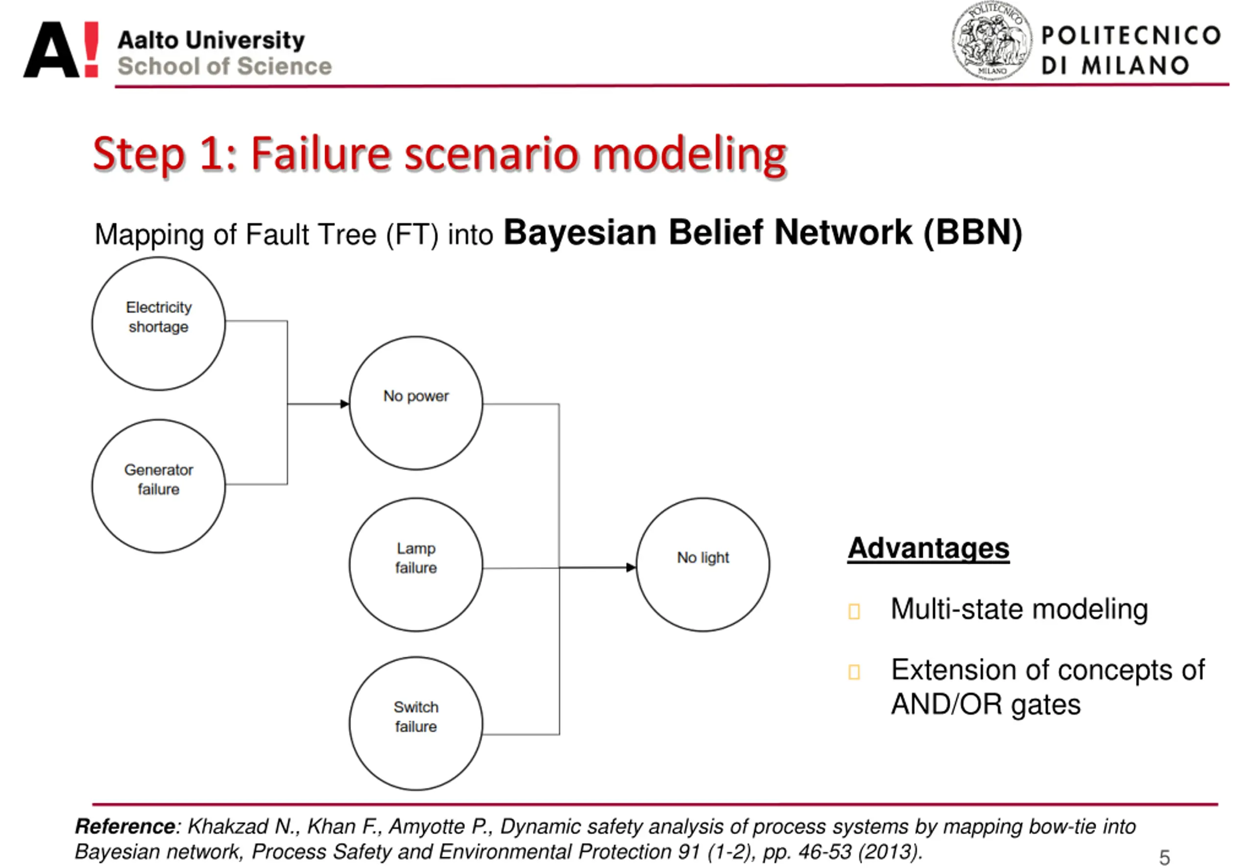 Step 1: Failure scenario modeling Mapping of Fault Tree (FT) into Bayesian Belief Network (BBN) Advantages Multi-state modeling Extension of concepts of AND/OR gates Reference: Khakzad N., Khan F., Amyotte P., Dynamic safety analysis of process systems by mapping bow-tie into Bayesian network, Process Safety and Environmental Protection 91 (1-2), pp. 46-53 (2013). 5