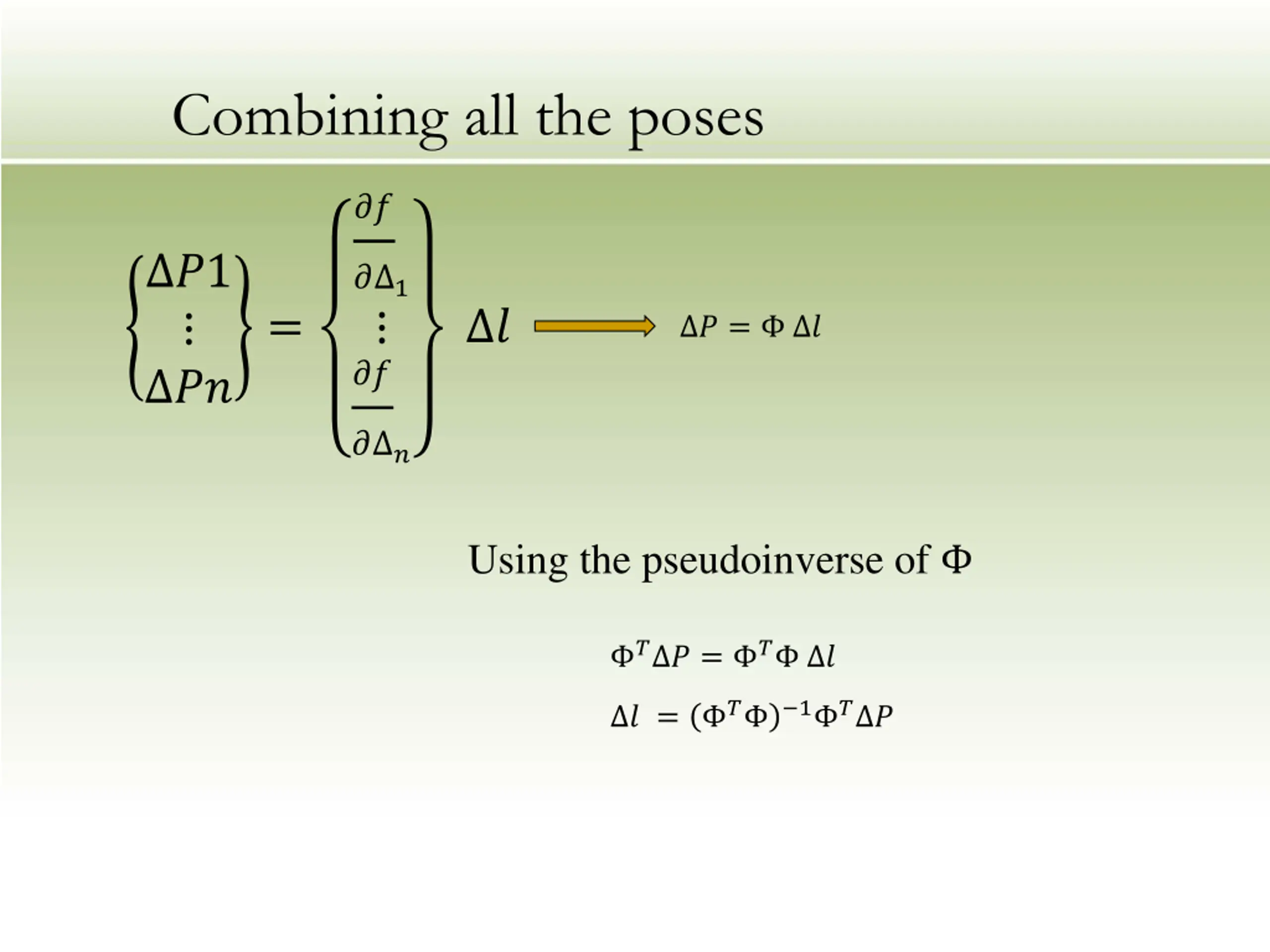 Combining all the poses ?? ?1 ?? ? 1 ?? = ? ? = ? ? ? Using the pseudoinverse of ? ? = ? ? ?= ? 1 ? ?