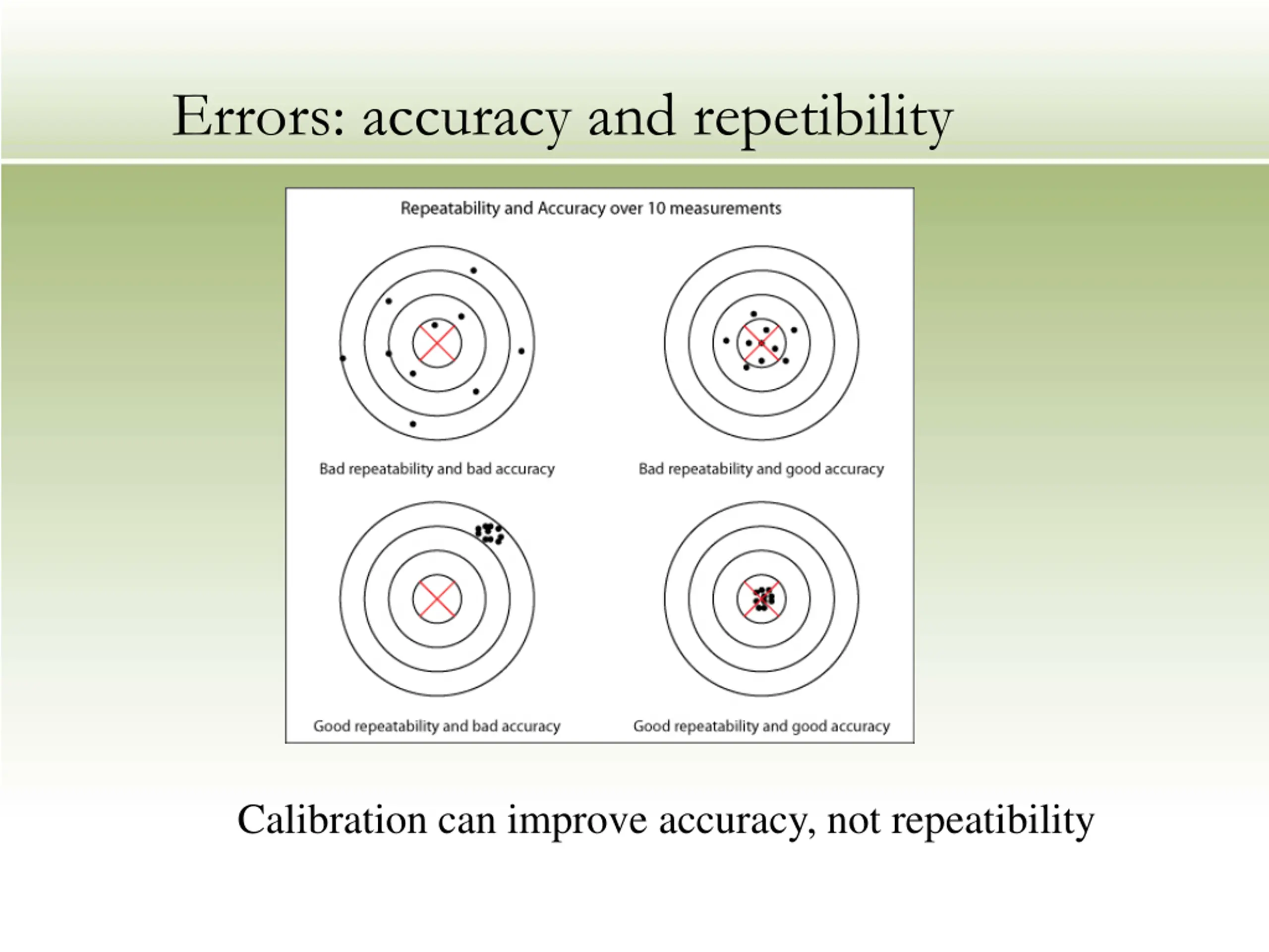 Errors: accuracy and repetibility Calibration can improve accuracy, not repeatibility