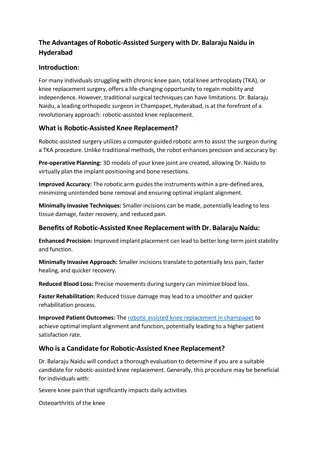 Robotic Primary Total Hip Replacement Surgery in Hyderabad by Dr. Balaraju Naidu Robotic primary total hip replacement surgery in Hyderabad is revolutionizing the field of orthopedic surgery, offering unparalleled precision and outcomes. This advanced procedure, spearheaded by Dr. Balaraju Naidu, combines the expertise of the best hip replacement surgeons in hyderabad with cutting-edge robotic technology to deliver optimal results for patients suffering from debilitating hip conditions. Dr. Balaraju Naidu's commitment to providing the best orthopedic care in hyderabad is evident through his adoption of robotic technology for hip replacement surgeries. Patients receive comprehensive care at the best hospital for orthopedic surgery in hyderabad, where every aspect of the procedure is managed by the best orthopedic specialists in hyderabad. The hospital is renowned for offering the best orthopedic treatment services in hyderabad, ensuring that each patient benefits from a personalized and effective treatment plan. With the support of the best orthopedic experts in hyderabad, patients can expect unparalleled expertise and compassionate care, making it the premier choice for anyone seeking top-notch orthopedic solutions. Benefits of Robotic Hip Replacement Surgery Primary total hip replacement surgery in hyderabad has seen significant advancements with the integration of robotic systems. The benefits of this approach include: Enhanced Precision Robotic assistance allows for meticulous planning and execution, resulting in the perfect alignment of the hip implant. This precision reduces the risk of complications and improves the longevity of the implant. Reduced Recovery Time Patients undergoing robotic hip replacement often experience shorter hospital stays and faster recovery times. This is due to the minimally invasive nature of the procedure, which causes less trauma to the surrounding tissues. ImprovedOutcomes The accuracy of robotic surgery contributes to better functional outcomes, allowing patients to regain mobility and return to their daily activities more quickly. This has established robotic surgery as the best hip replacement treatment in hyderabad. Why Choose Robotic Surgery? Opting for primary total hip arthroplasty in hyderabad using robotic technology under the care of Dr. Balaraju Naidu offers several compelling reasons: Expertise of Top Surgeons
