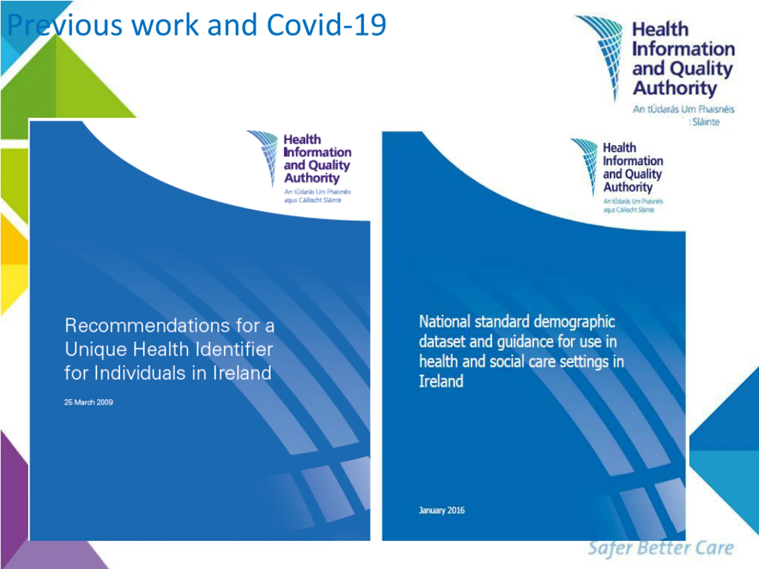 Data and HIQAs role in Irish Health and Social Care Kevin O Carroll, Standards and Technology Manager Health Information and Quality Authority