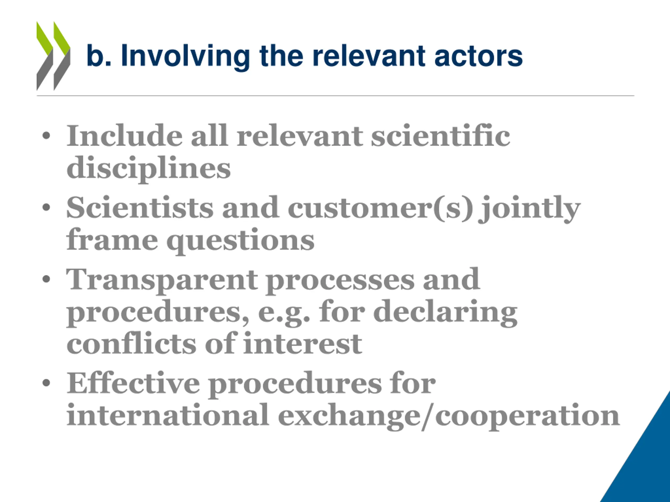 b. Involving the relevant actors Include all relevant scientific disciplines Scientists and customer(s) jointly frame questions Transparent processes and procedures, e.g. for declaring conflicts of interest Effective procedures for international exchange/cooperation 5