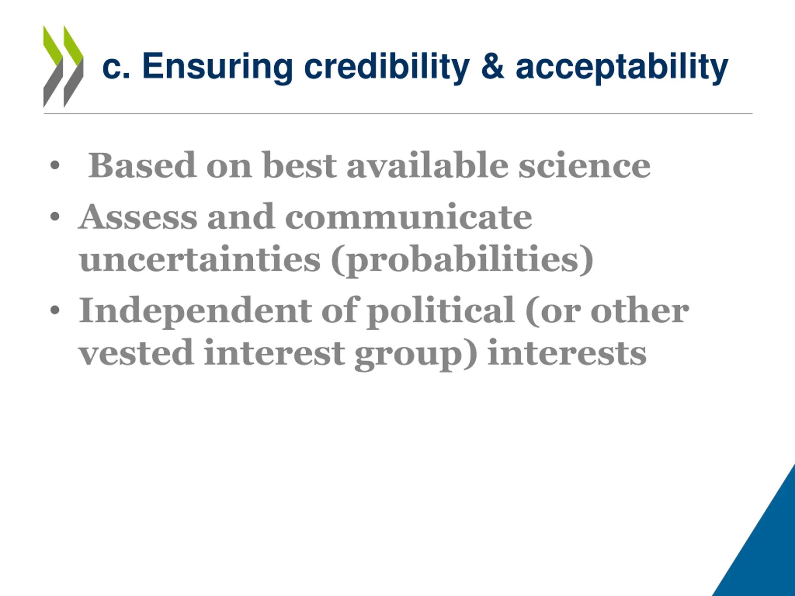 c. Ensuring credibility & acceptability Based on best available science Assess and communicate uncertainties (probabilities) Independent of political (or other vested interest group) interests 6