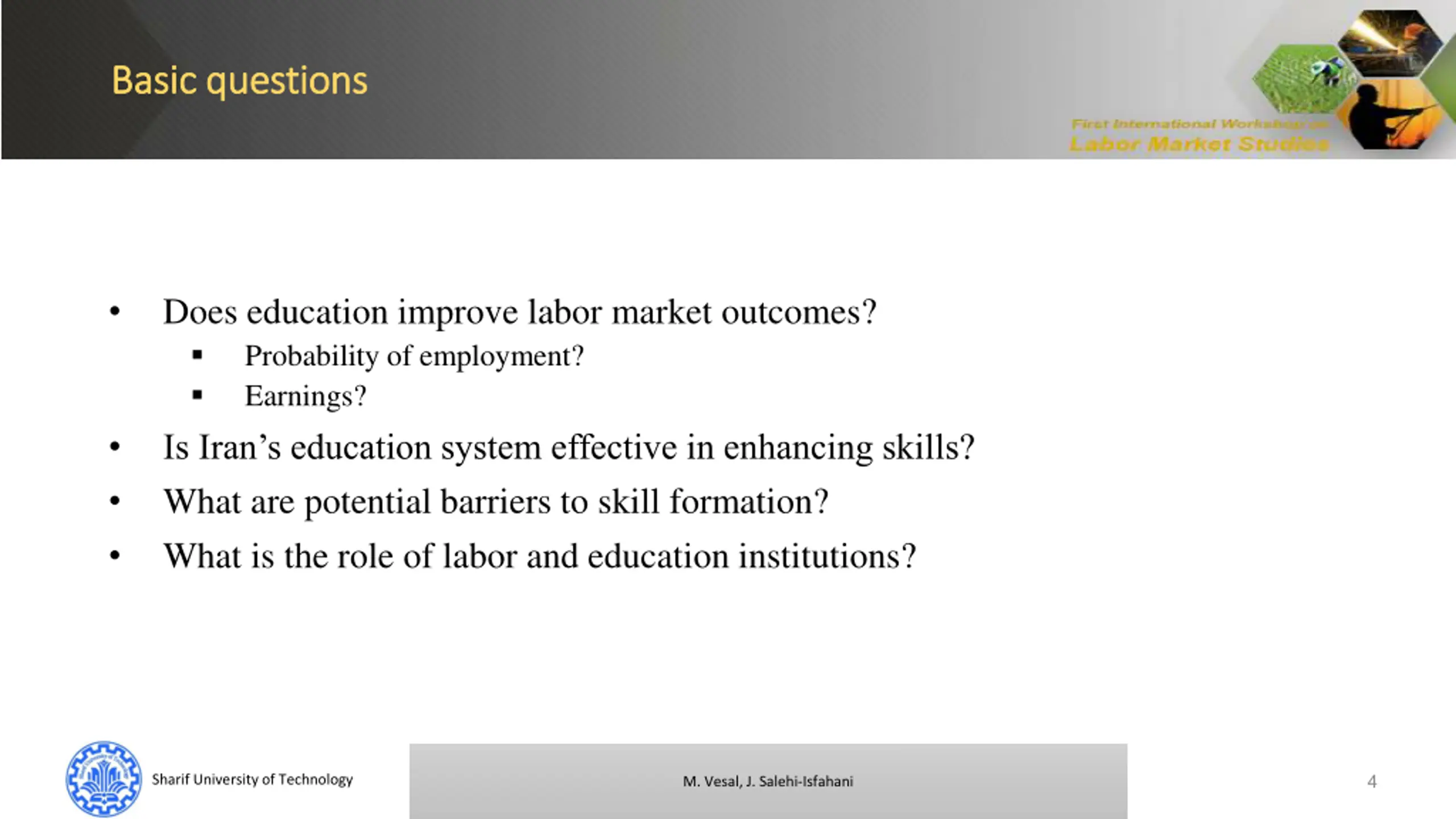 Basic questions Basic questions Does education improve labor market outcomes? Probability of employment? Earnings? Is Iran s education system effective in enhancing skills? What are potential barriers to skill formation? What is the role of labor and education institutions? 4 Sharif University of Technology M. Vesal, J. Salehi-Isfahani