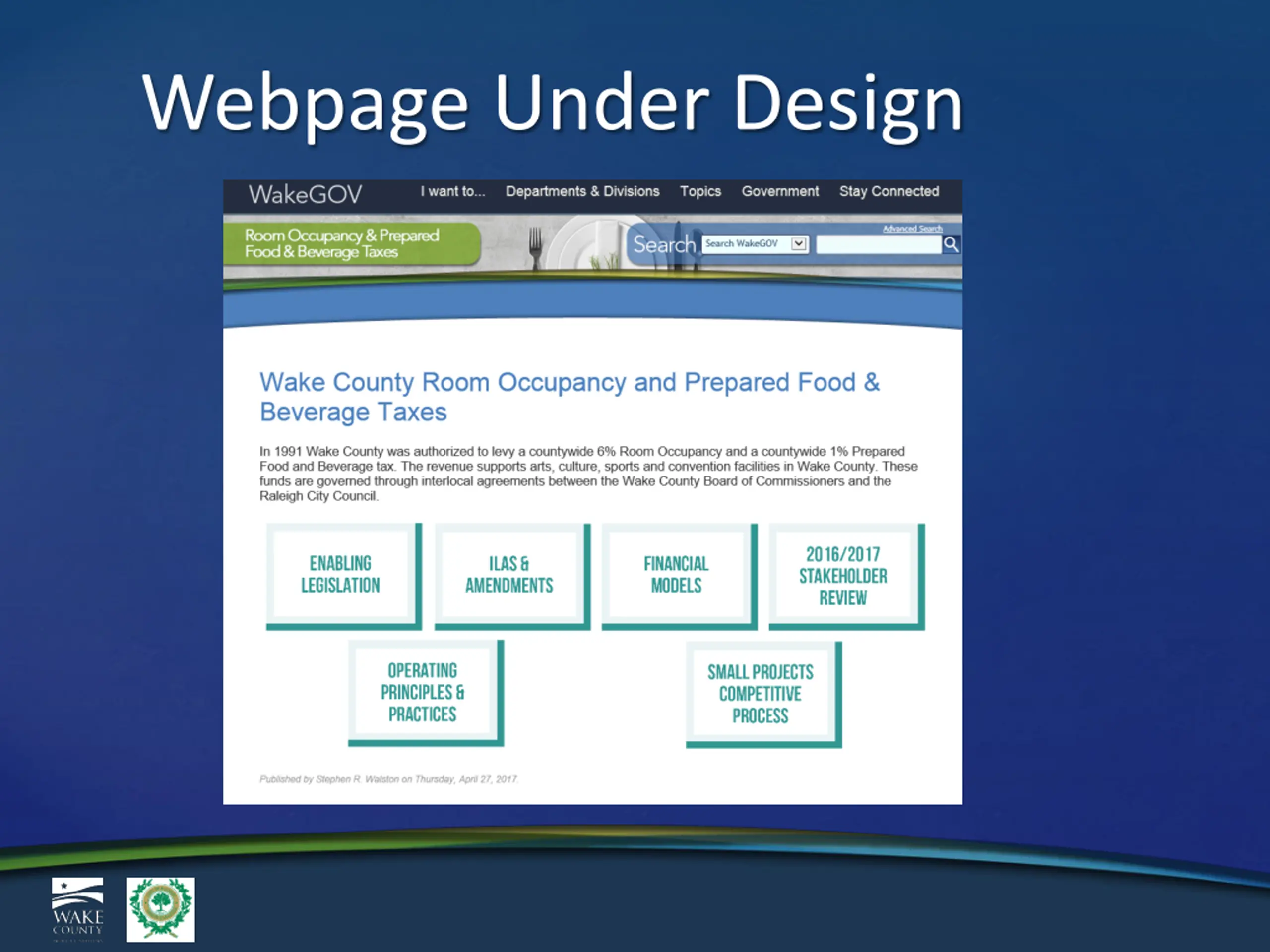 Room Occupancy and Prepared Food and Beverage Taxes Review Stakeholders April 28, 2017 1