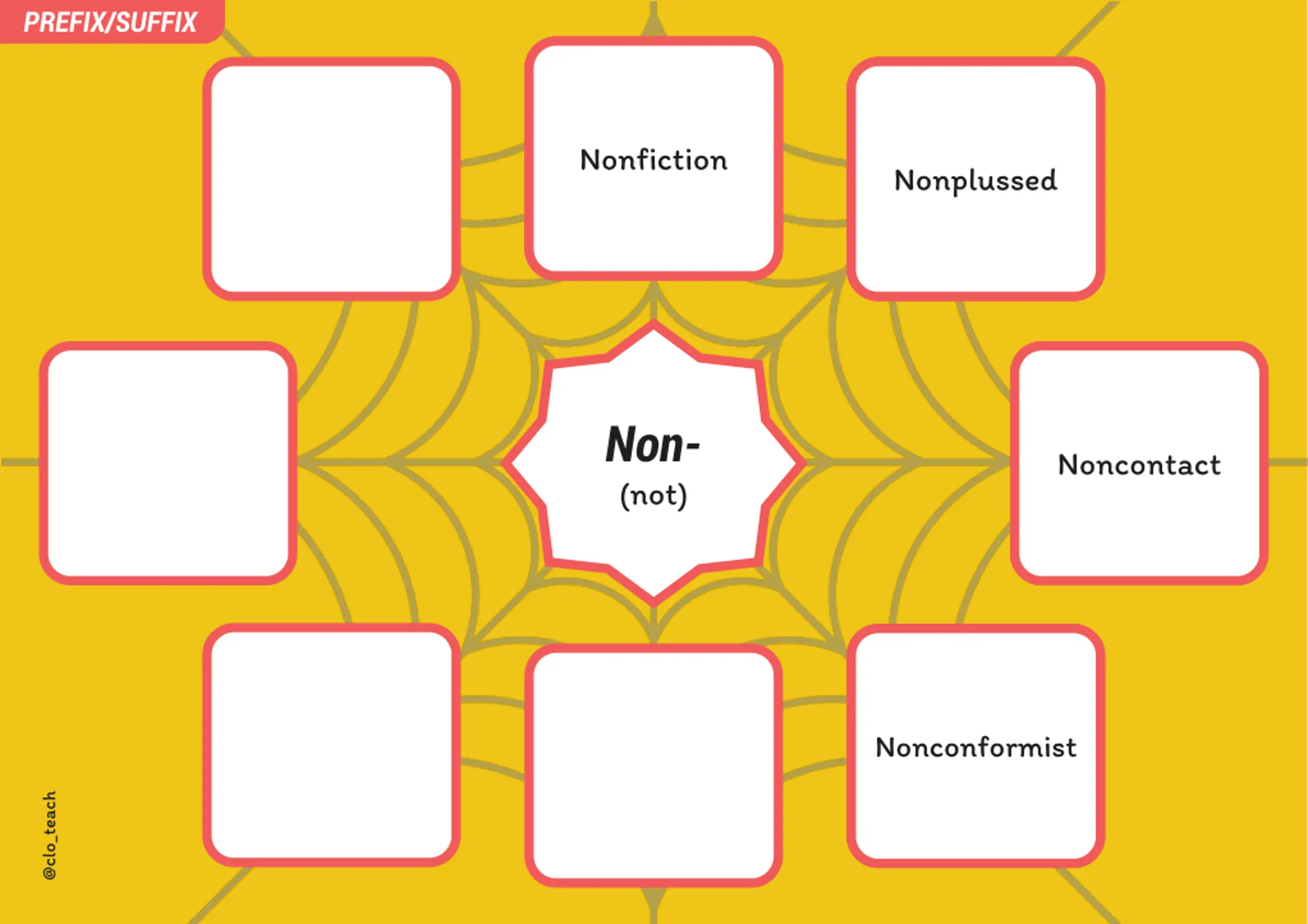 PREFIX/SUFFIX Nonfiction Nonplussed Non- (not) Noncontact Nonconformist @clo_teach