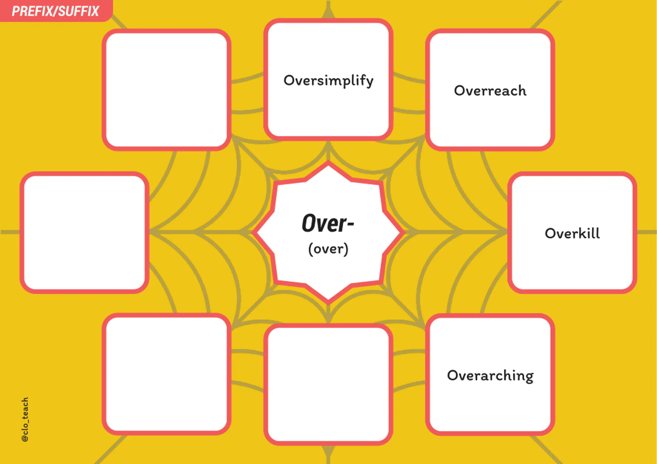 PREFIX/SUFFIX Oversimplify Overreach Over- (over) Overkill Overarching @clo_teach