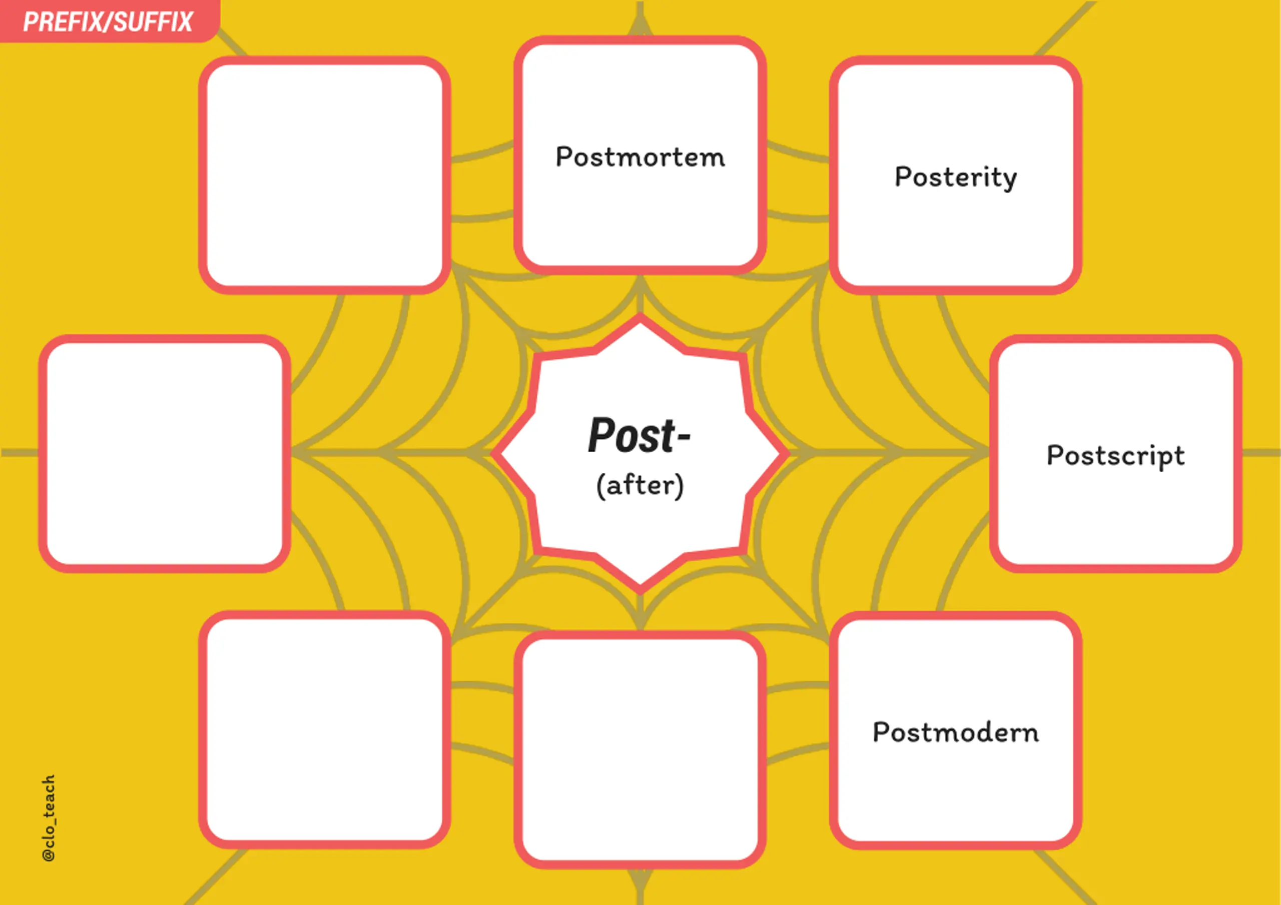PREFIX/SUFFIX Postmortem Posterity Post- (after) Postscript Postmodern @clo_teach