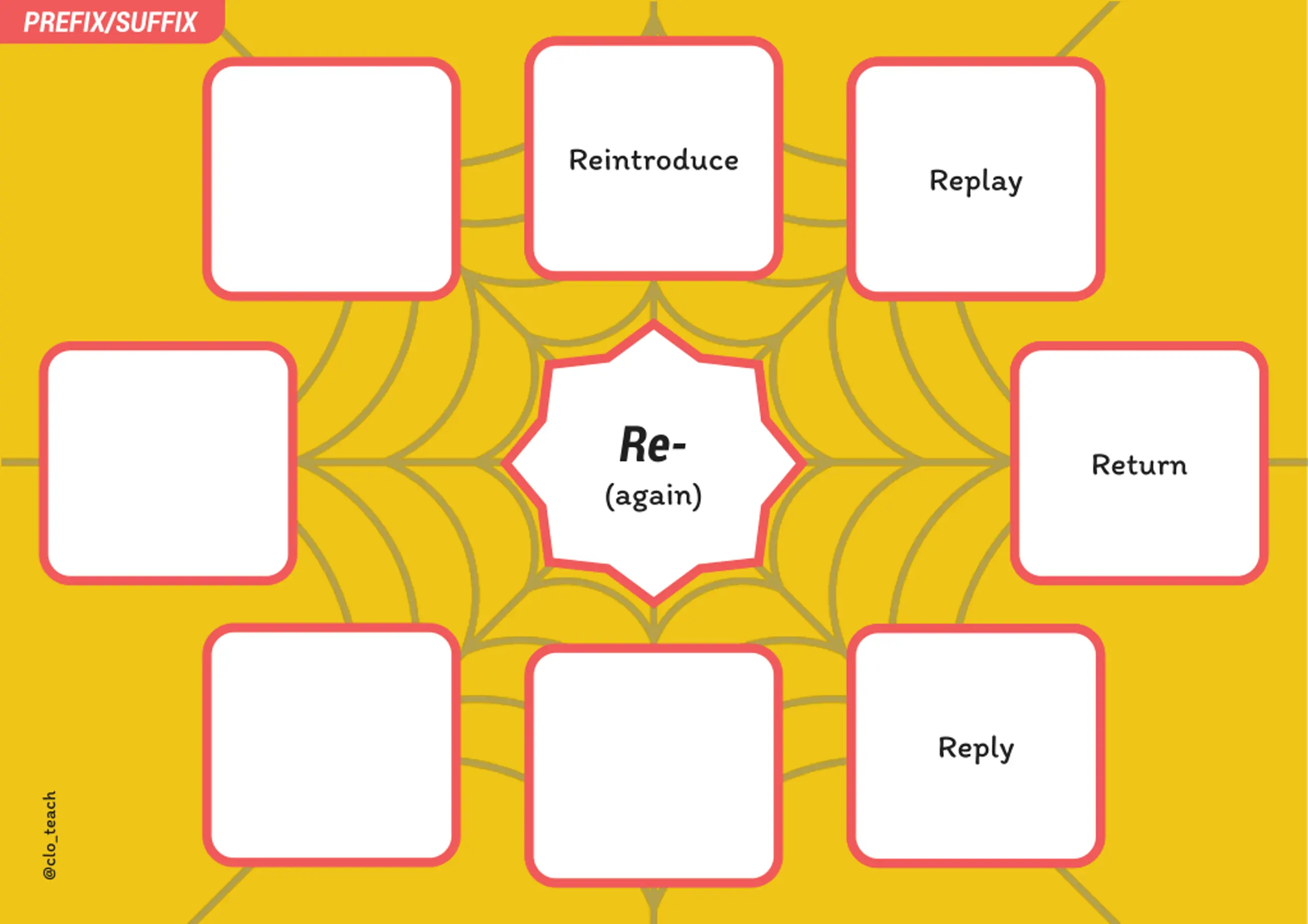PREFIX/SUFFIX Reintroduce Replay Re- (again) Return Reply @clo_teach