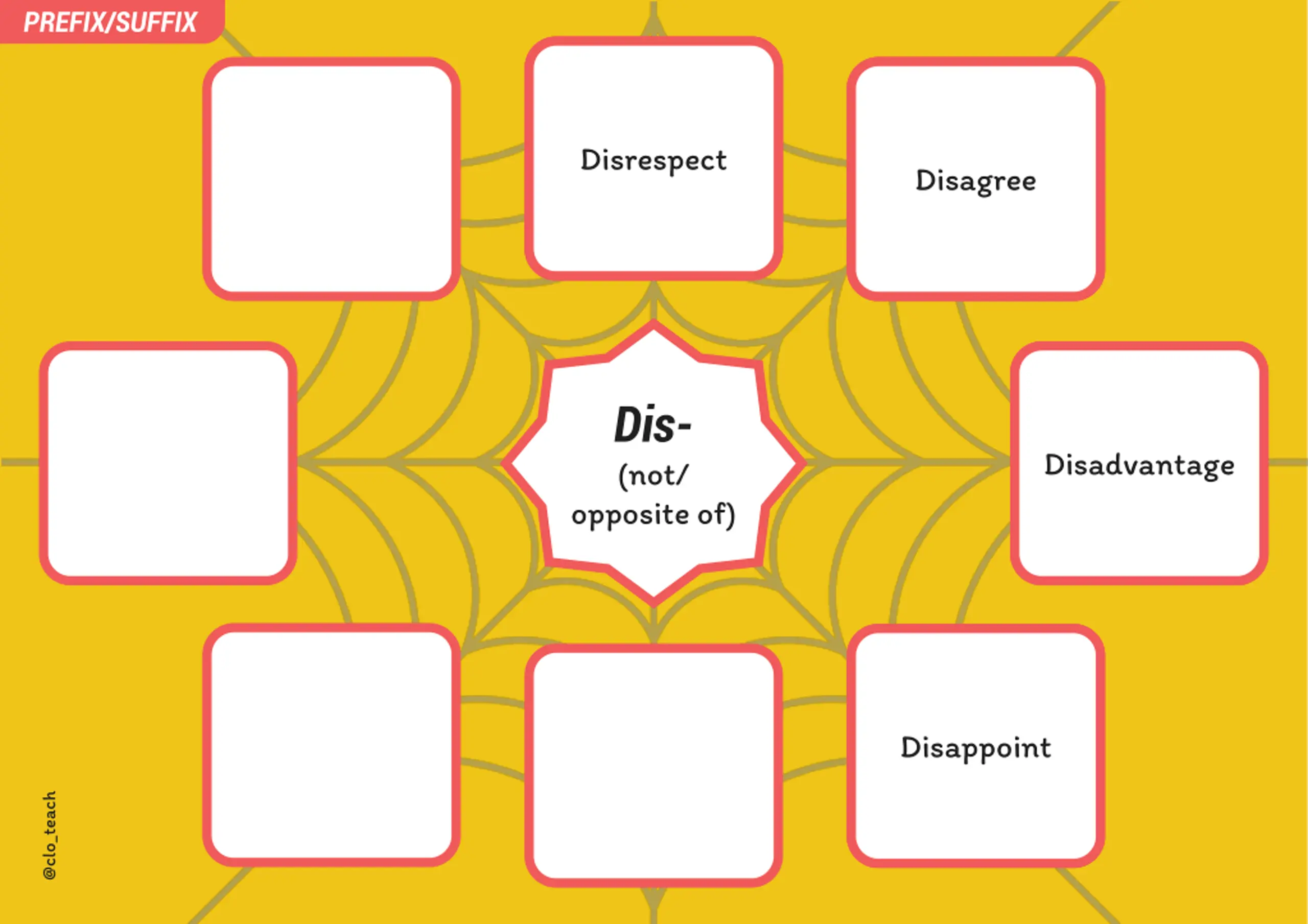 PREFIX/SUFFIX Disrespect Disagree Dis- (not/ Disadvantage opposite of) Disappoint @clo_teach