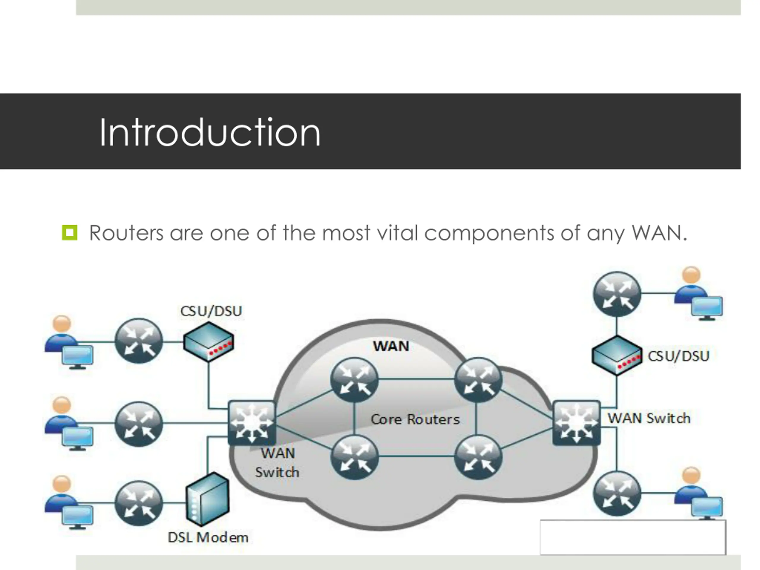 Router Understanding routers and routing requires examining a router from two different perspectives: physical logical Together, these physical components and logical functions enable to build and use internetworks, including WANs