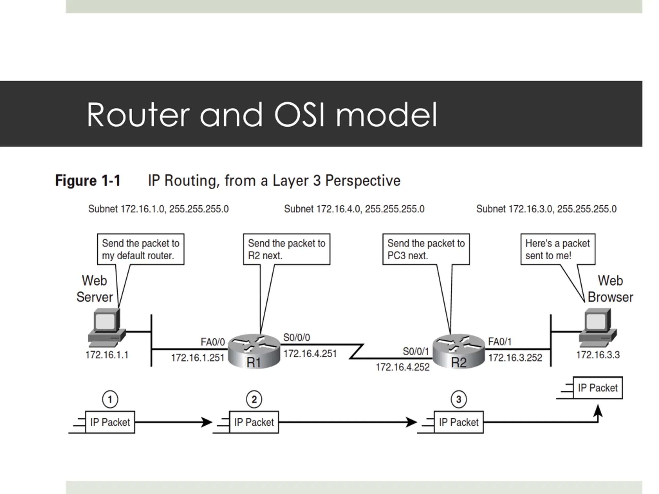 Router and OSI model A router operates predominantly at the first three layers of the OSI reference model . Layer 1, 2, and 3 standards and protocols