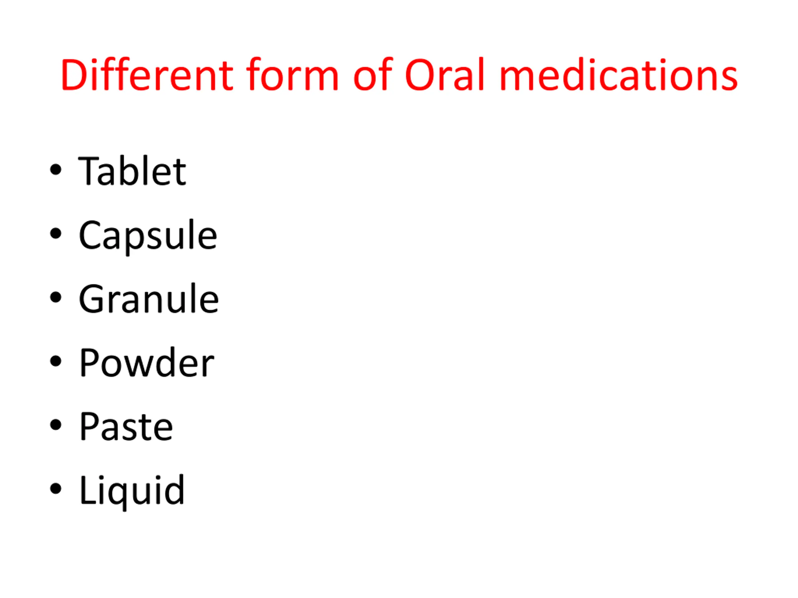 Different form of Oral medications Tablet Capsule Granule Powder Paste Liquid