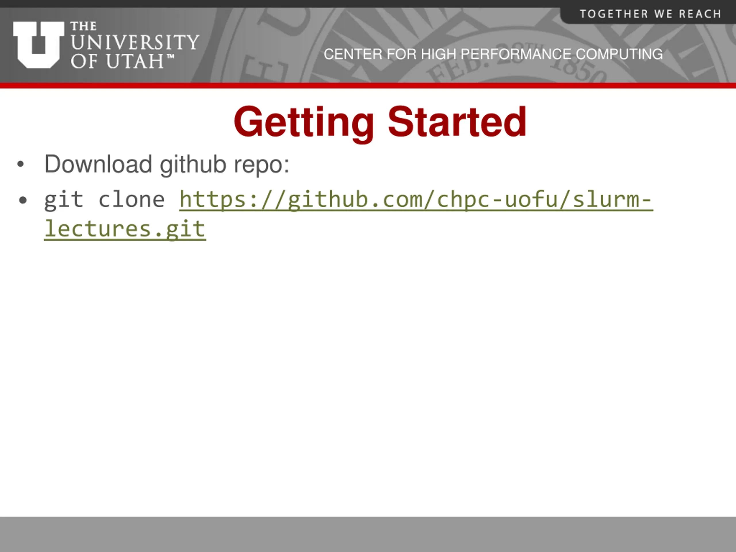 CENTER FOR HIGH PERFORMANCE COMPUTING Getting Started Download github repo: git clone https://github.com/chpc-uofu/slurm- lectures.git