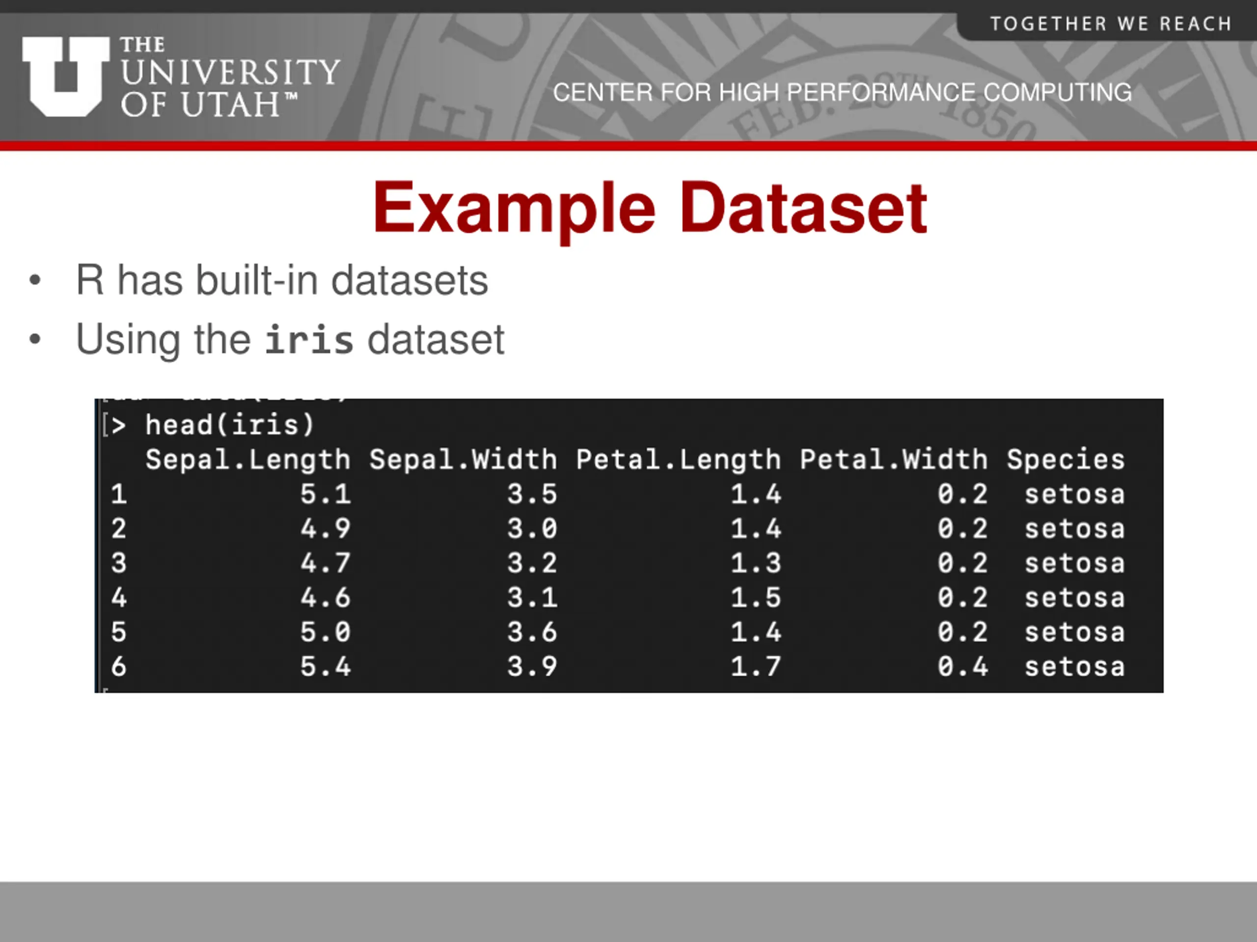 CENTER FOR HIGH PERFORMANCE COMPUTING Example Dataset R has built-in datasets Using the iris dataset