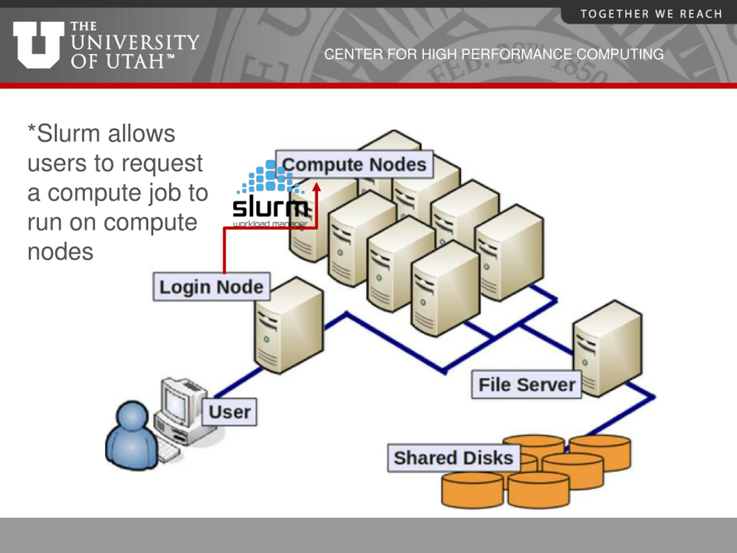 CENTER FOR HIGH PERFORMANCE COMPUTING *Slurm allows users to request a compute job to run on compute nodes
