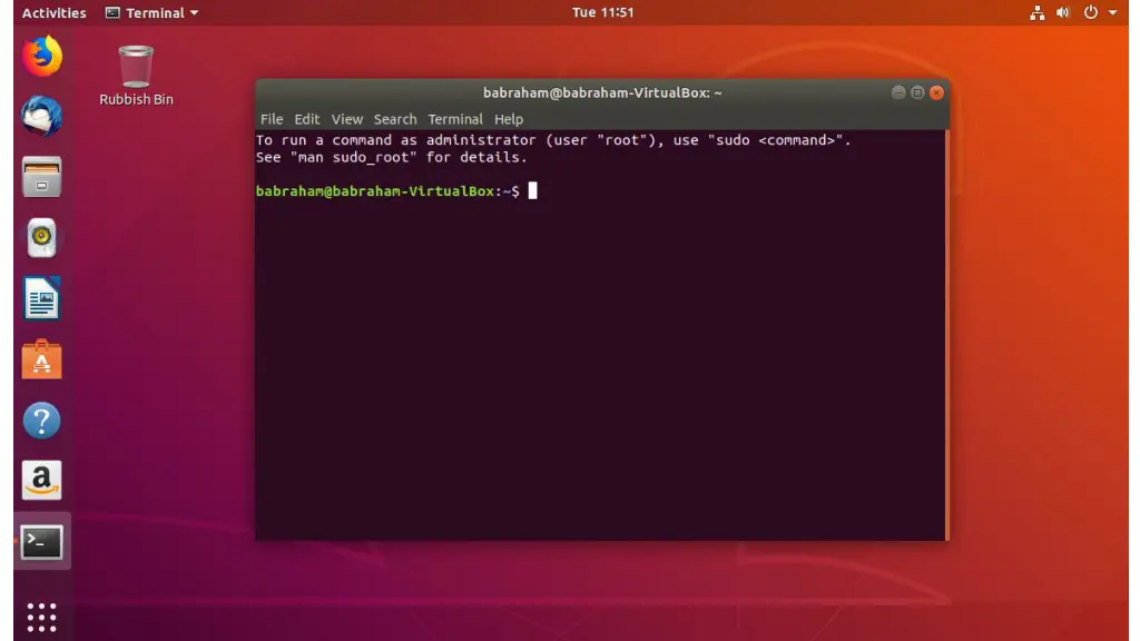 Running graphical programs babraham@babraham-VirtualBox:~$ xeyes babraham@babraham-VirtualBox:~$ Note that you can't enter another command until you close the program you launched
