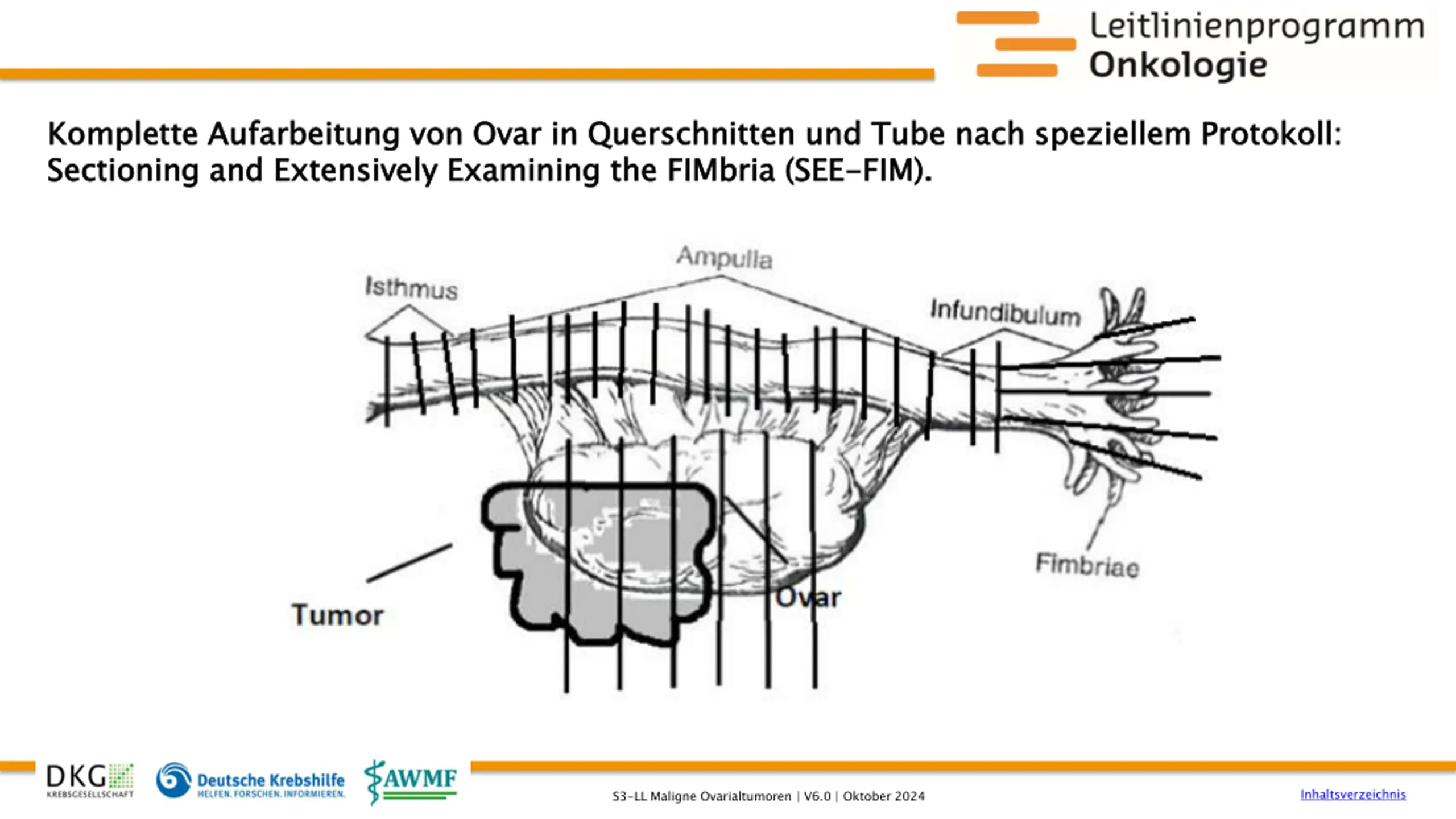Komplette Aufarbeitung von Ovar in Querschnitten und Tube nach speziellem Protokoll: Sectioning and Extensively Examining the FIMbria (SEE Komplette Aufarbeitung von Ovar in Querschnitten und Tube nach speziellem Protokoll: Sectioning and Extensively Examining the FIMbria (SEE- -FIM). FIM). Inhaltsverzeichnis S3-LL Maligne Ovarialtumoren | V6.0 | Oktober 2024