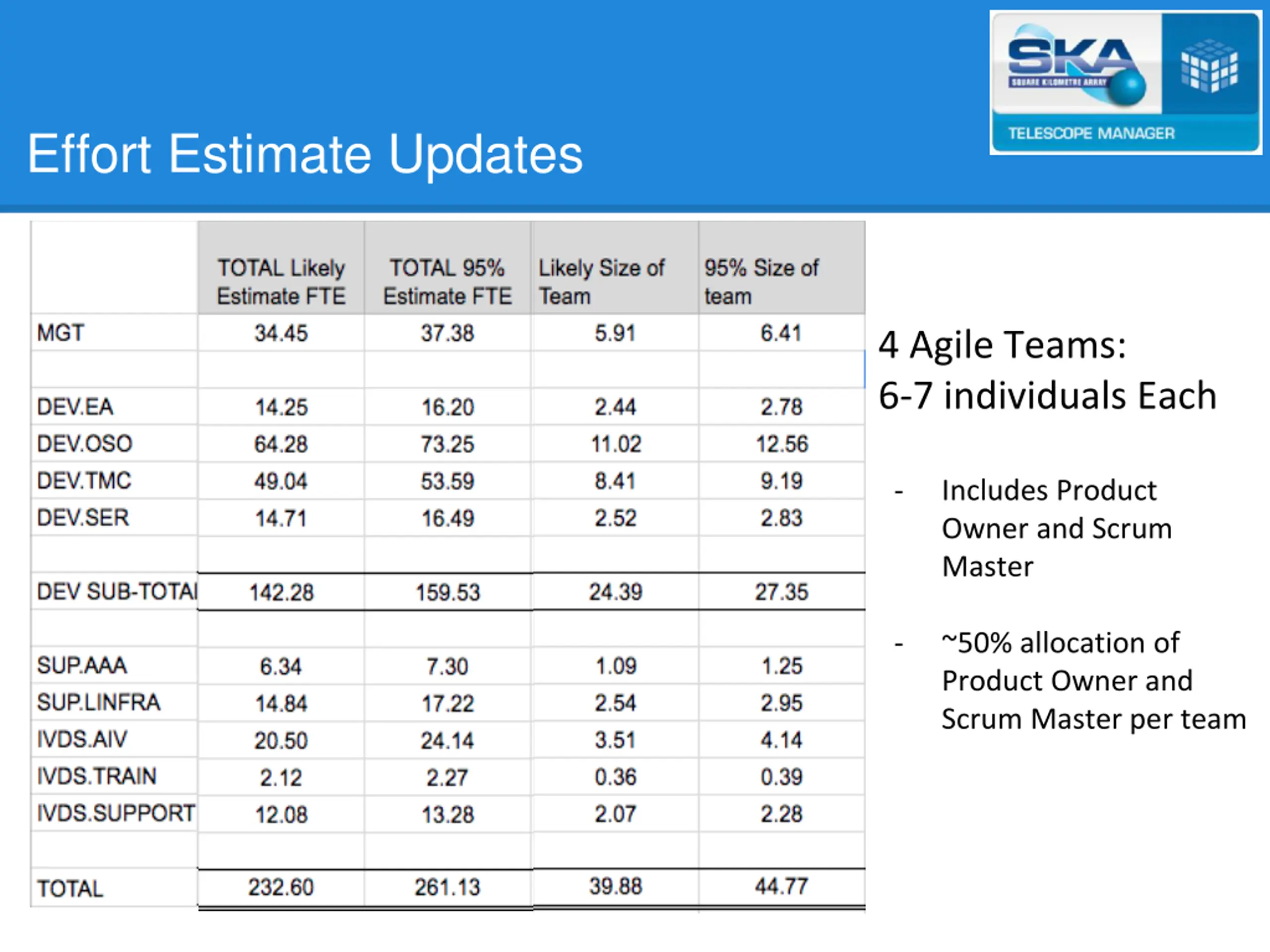 Effort Estimate Updates 4 Agile Teams: 6-7 individuals Each - Includes Product Owner and Scrum Master - ~50% allocation of Product Owner and Scrum Master per team