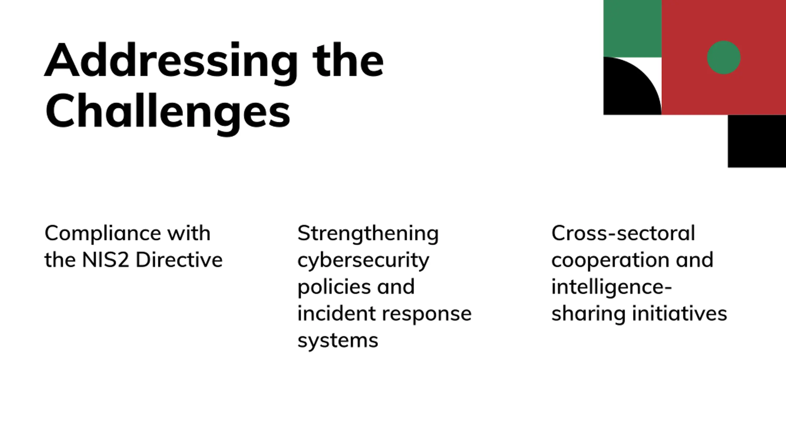 Addressing the Challenges Compliance with the NIS2 Directive Strengthening cybersecurity policies and incident response systems Cross-sectoral cooperation and intelligence- sharing initiatives
