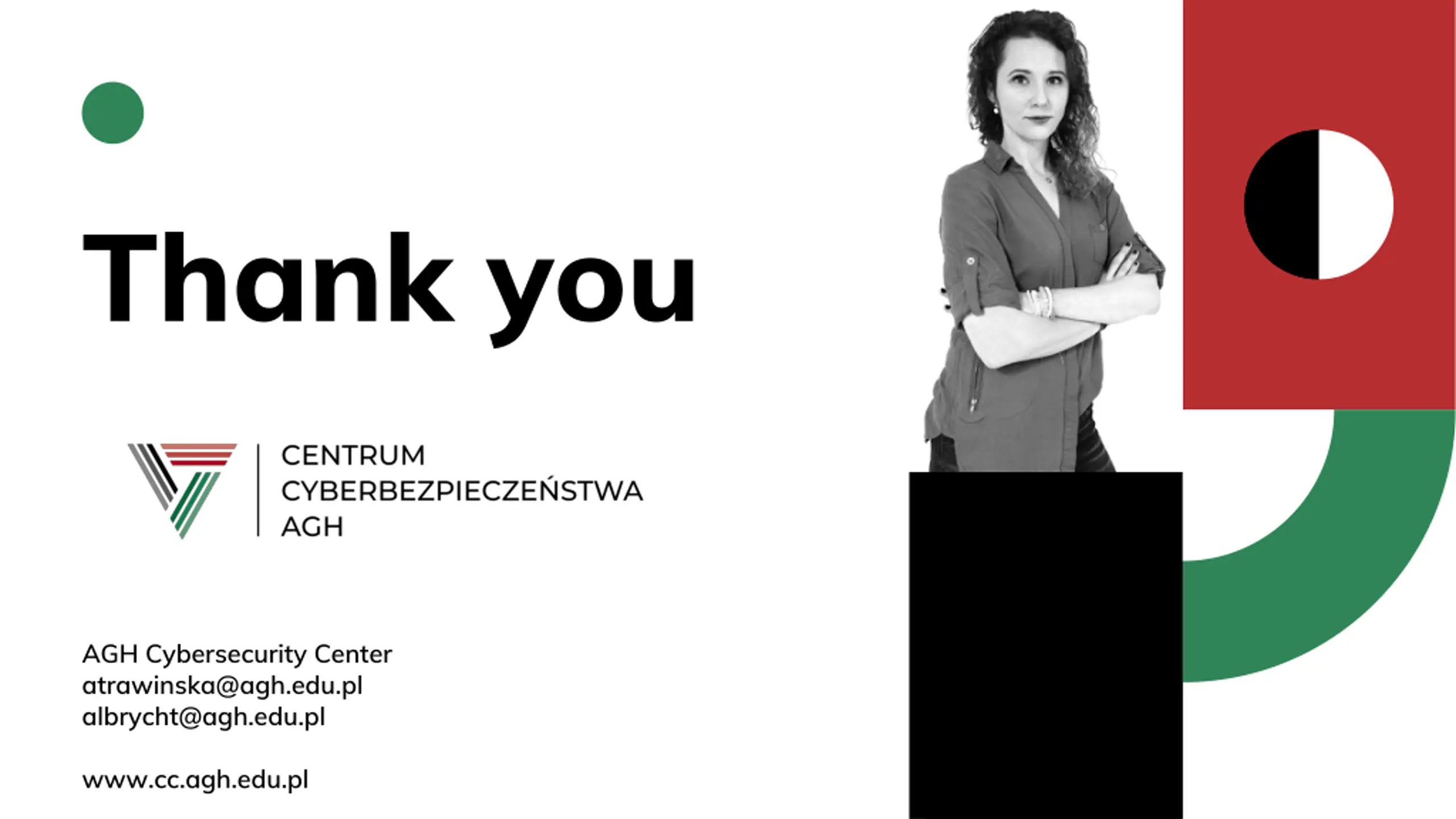 Thank you AGH Cybersecurity Center atrawinska@agh.edu.pl albrycht@agh.edu.pl www.cc.agh.edu.pl